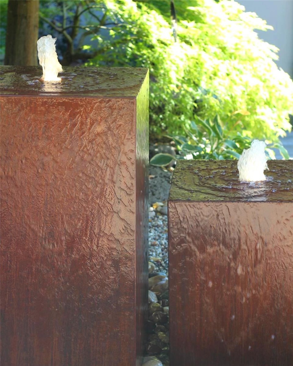 Cortenstahl Duo 60/100cm Würfel und Quader Edelrost Gartenbrunnen Komplettset