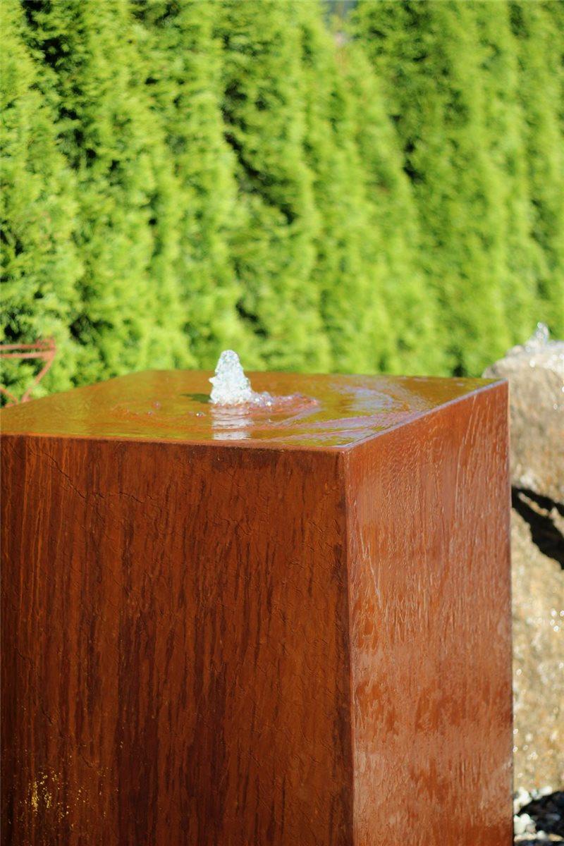 Cortenstahl Quader 100cm Edelrost Gartenbrunnen Springbrunnen Komplettset