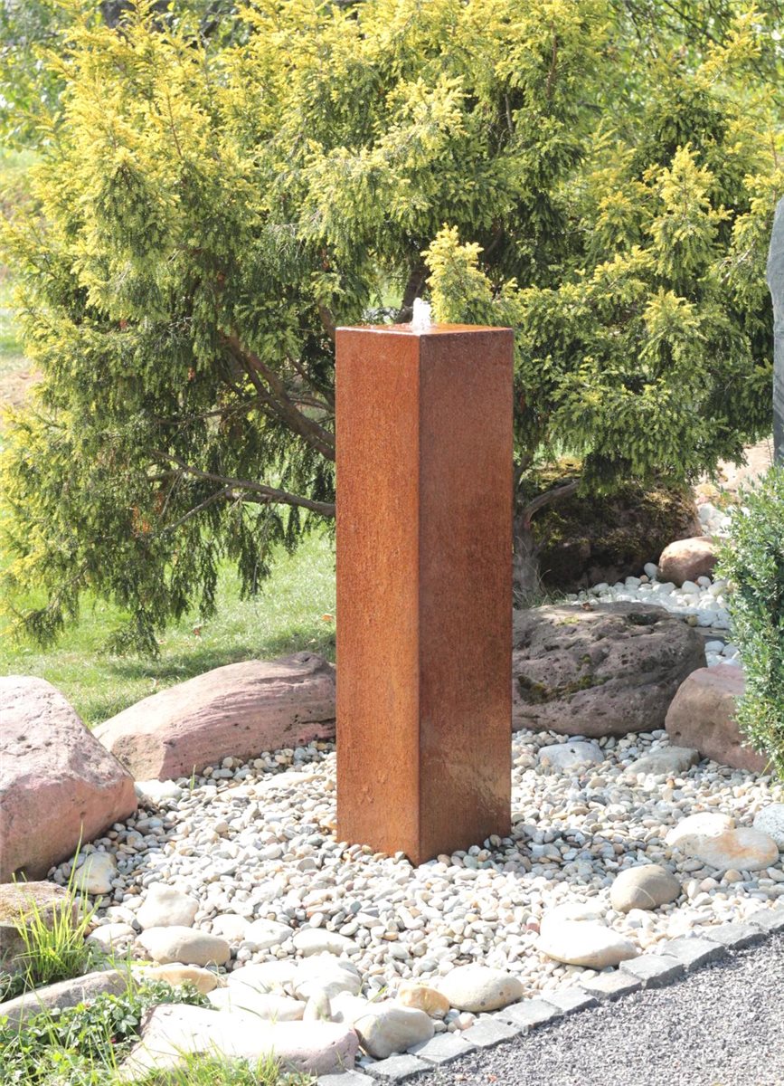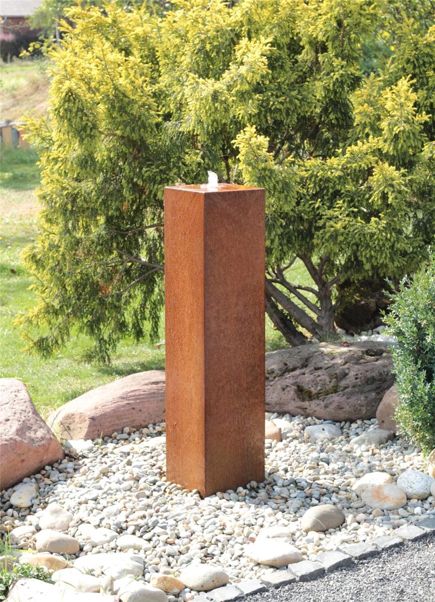 Cortenstahl Säule 150cm Edelrost Gartenbrunnen Springbrunnen Komplettset
