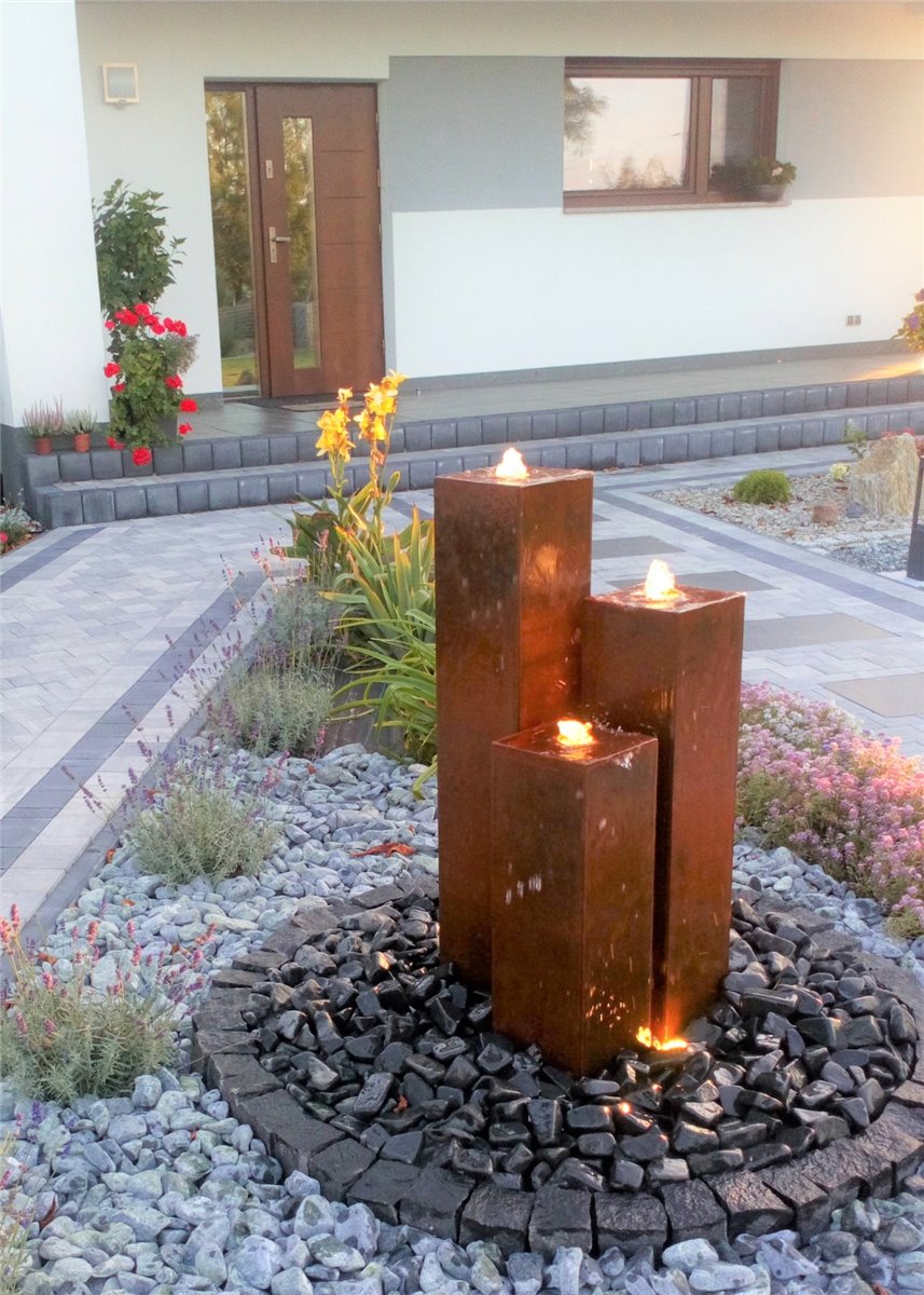 Cortenstahl Säulen Trio 100/20 Edelrost Gartenbrunnen Springbrunnen Komplettset