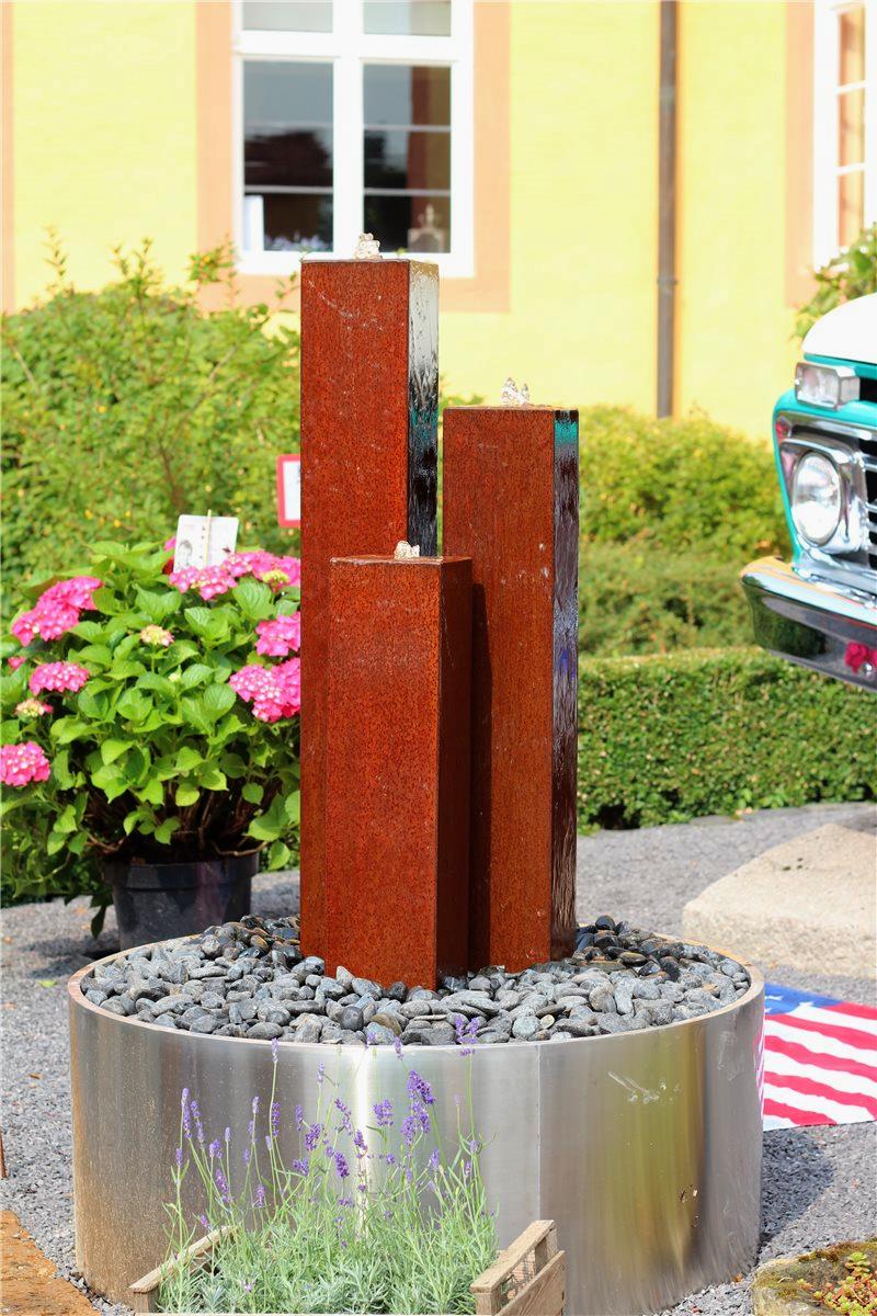 Dieser moderne Brunnen ist ein Deutsches Qualitätsprodukt und entsteht in hochwertiger Handwerksarbeit in den Werkstätten der BRUNNENSCHMIEDE am Bayerischen Untermain. Wir verarbeiten dabei ausschließlich Cortenstahl höchster Güte in mind. 3 mm Materialstärke Auch als Terassenbrunnen und Zimmerbrunnen geeignet Cortenstahl - auch als wetterfester Baustahl bezeichnet - ist ein äußerst langlebiges und ästhetisches Material und findet daher oft Verwendung in der modernen Architektur und Gartengestaltung Cortenstahl bildet auf der Oberfläche durch Bewitterung unter der eigentlichen Rostschicht eine dichte Sperrschicht, welche den Brunnen vor weiterer Korrosion schützt: Die für Cortenstahl charakteristische Edelrost Patina entwickelt sich in erdigen Farbtönen, Farb- und Zeichnungsunterschiede sind natürlich und machen jeden Brunnen einzigartig Haben Sie Fragen zum Produkt? Unsere Experten beraten Sie gerne telefonisch oder persönlich in unserer AusstellungLieferhinweis