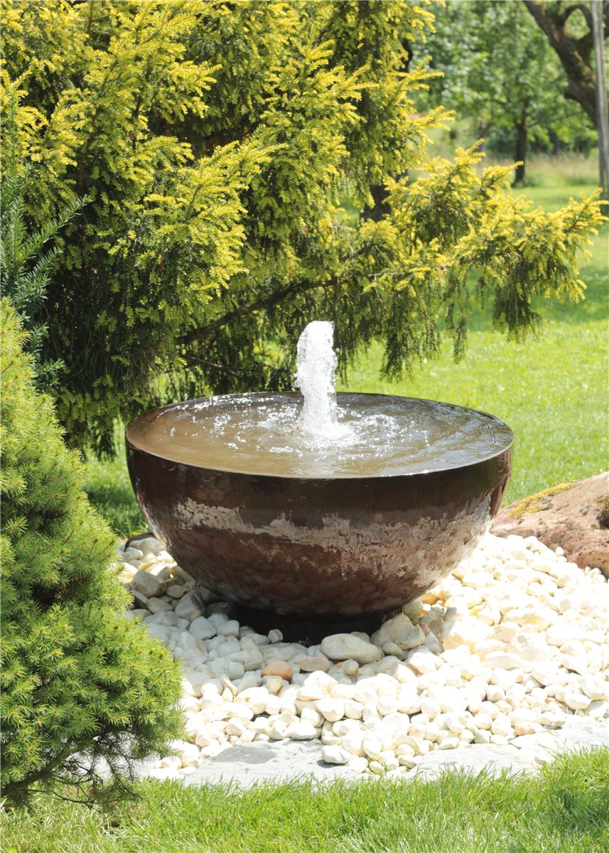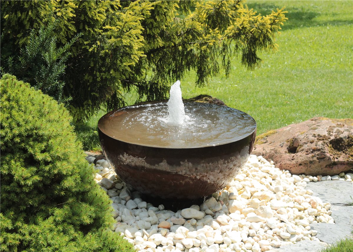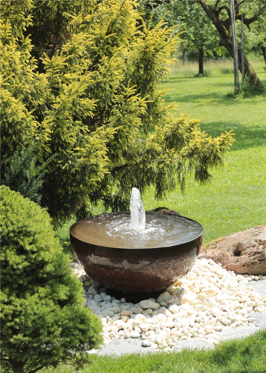 Cortenstahl Wasserschale Bowl 80 mit Fontäne Edelrost Gartenbrunnen Springbrunnen Komplettset
