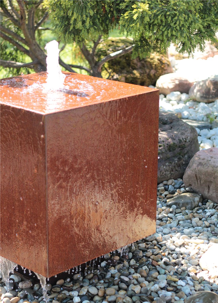 Cortenstahl Würfel 50cm Schwebeoptik Edelrost Gartenbrunnen Springbrunnen Komplettset