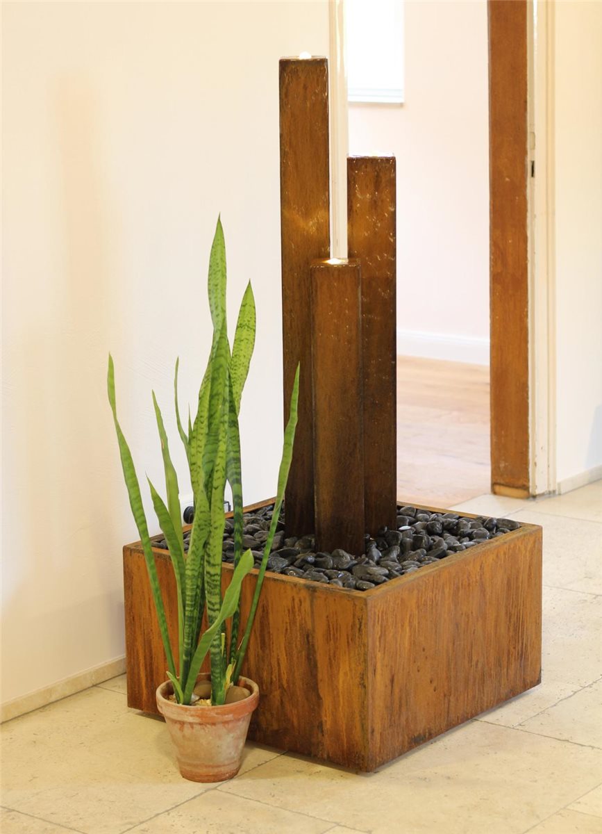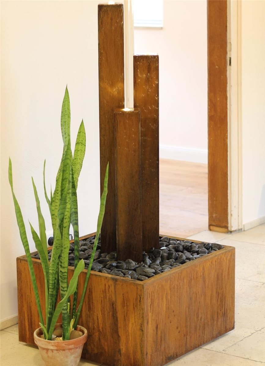 - Der freistehende Cortenstahlbrunnen ist nicht nur im Garten ein echtes Highlight - auch als Terrassenbrunnen oder besonderes Interior-Designerstück zieht er alle Blicke auf sich