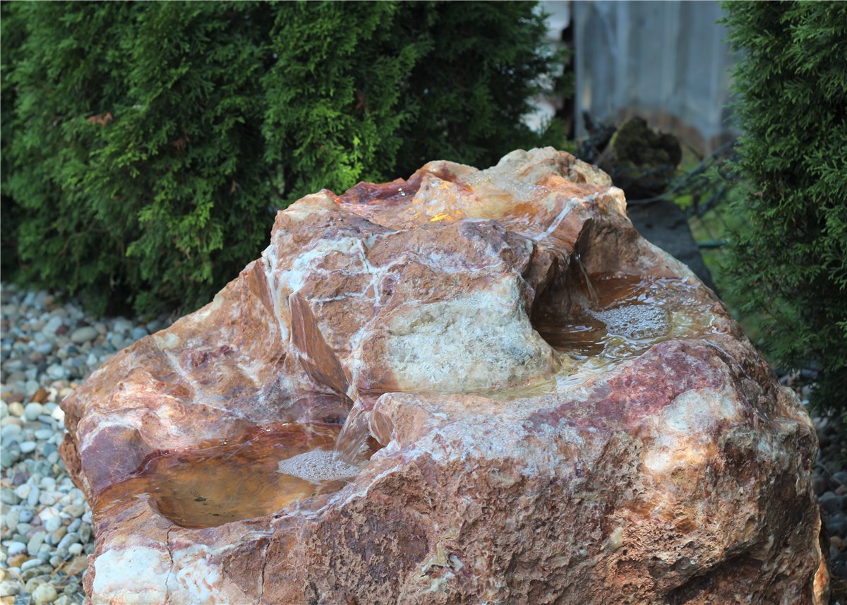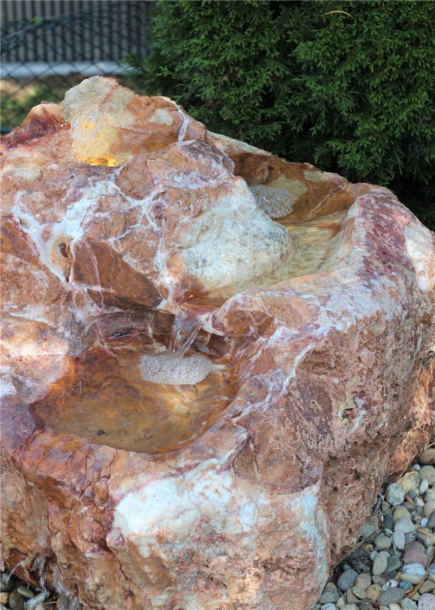 - Die einzigartige Marmorierung und Farbgebung machen den Quellstein zu einem besondes außergewöhnlich schönen Einzelstück