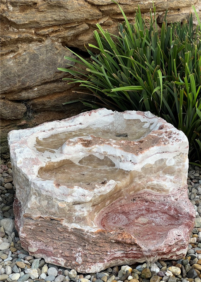 Quellstein Bachlauf Onyx Marmor Flamingo L75cm Gartenbrunnen Springbrunnen Komplettset
