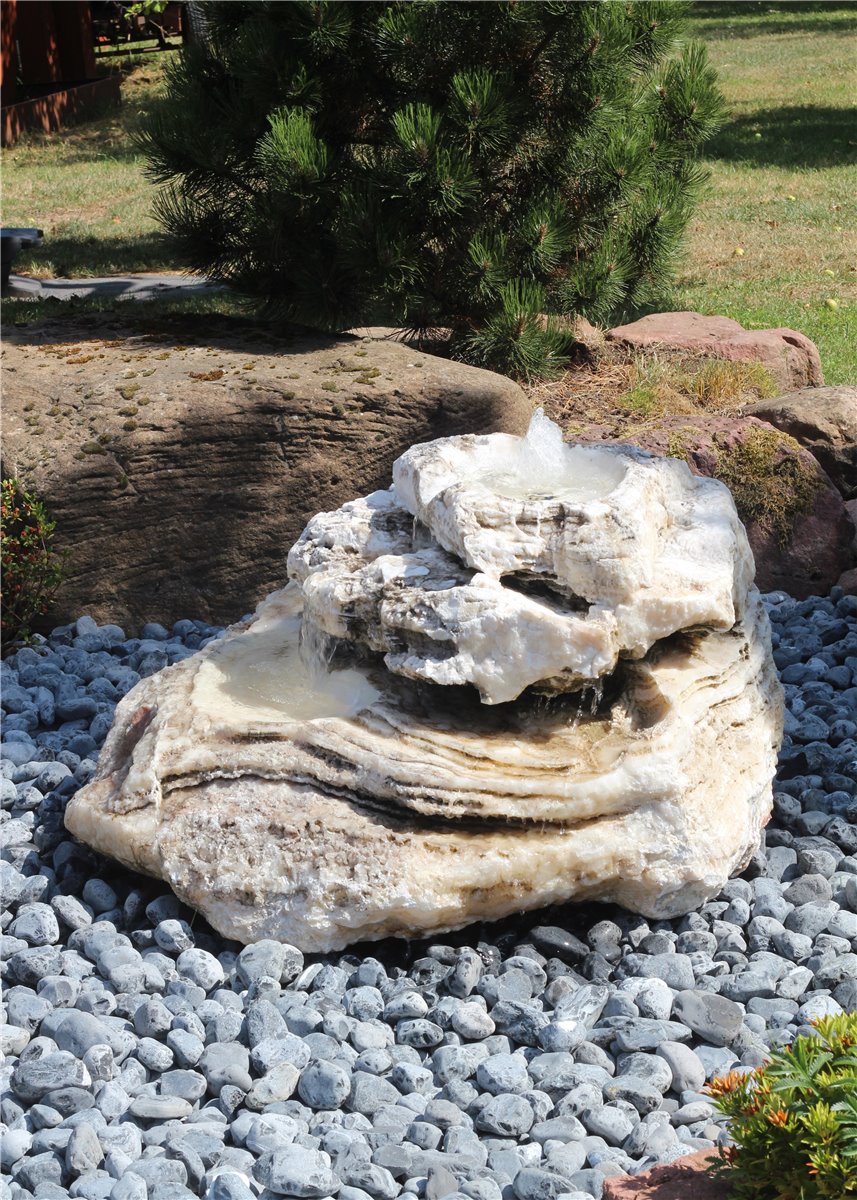 Quellstein Bachlauf Onyx Marmor L110cm mit Quellschalen Gartenbrunnen Springbrunnen