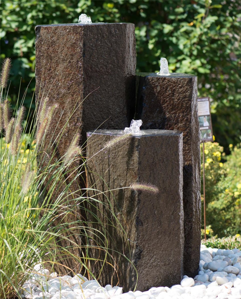 Quellstein Basalt Säulen Trio 100cm mit Quellschalen Gartenbrunnen Springbrunnen