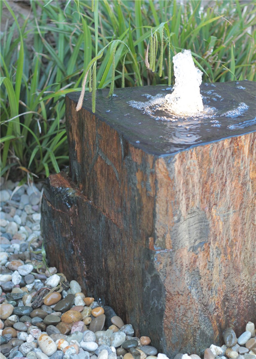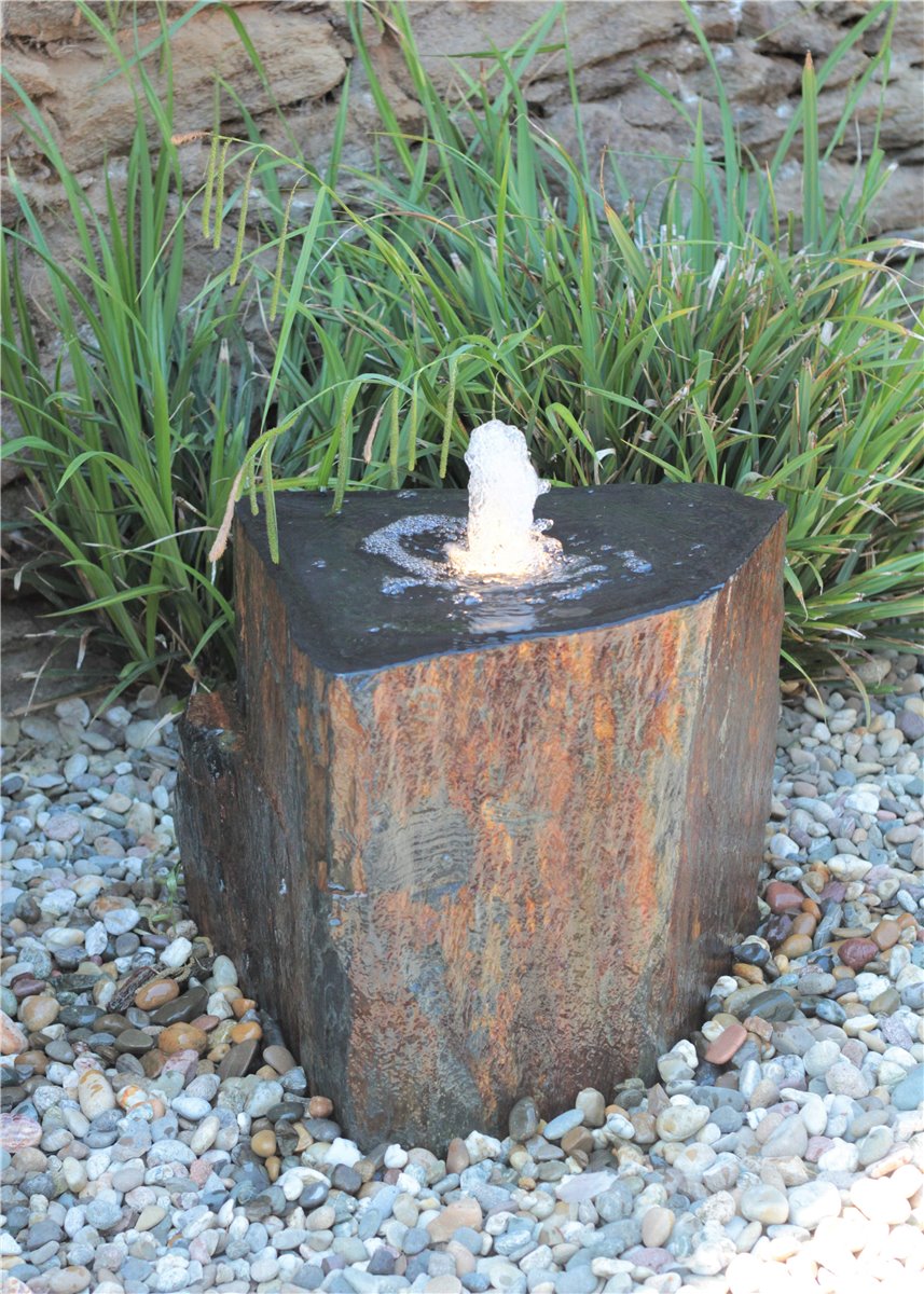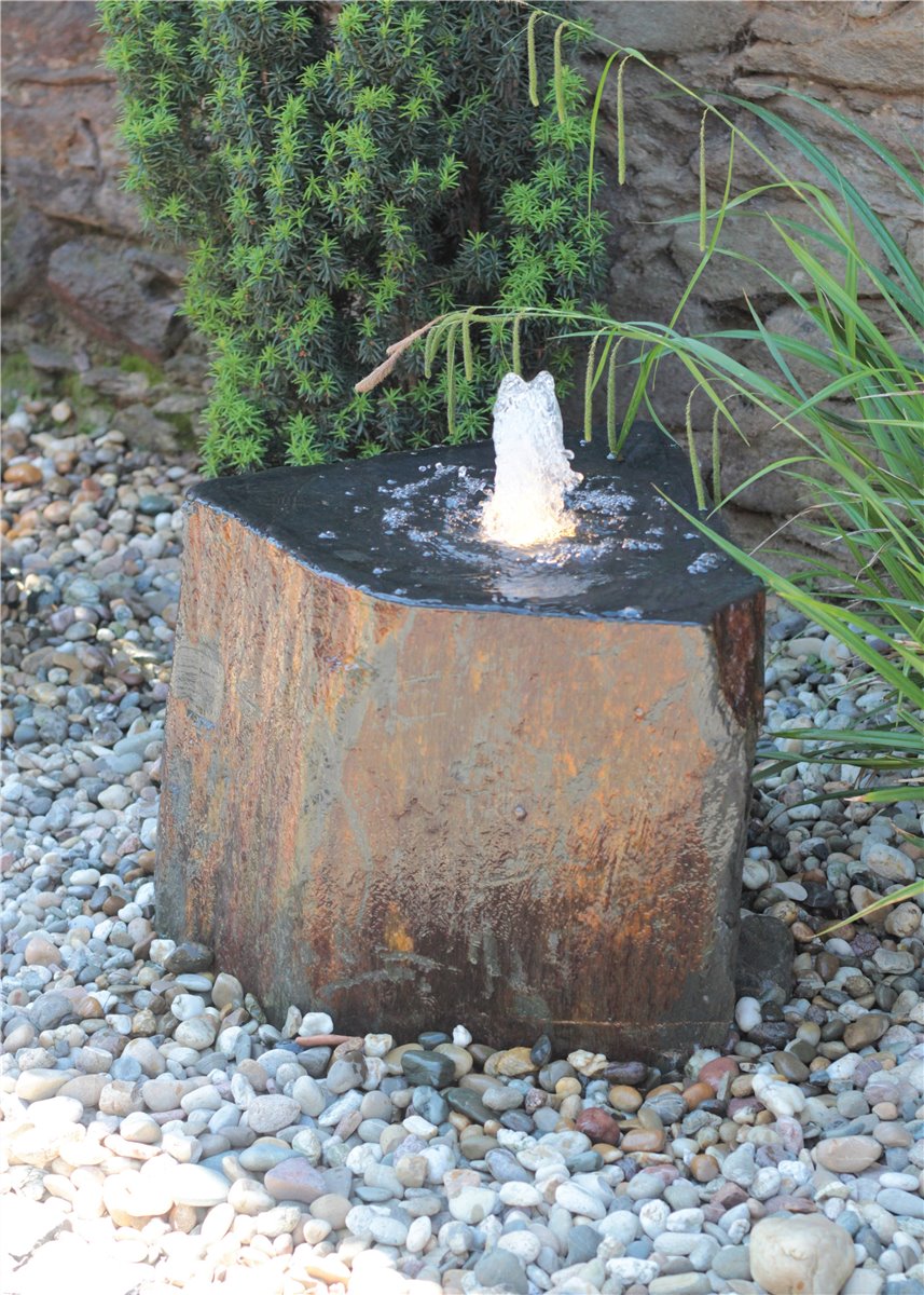 Quellstein Schiefer L60cm mit Quellschale Komplettset Gartenbrunnen Springbrunnen