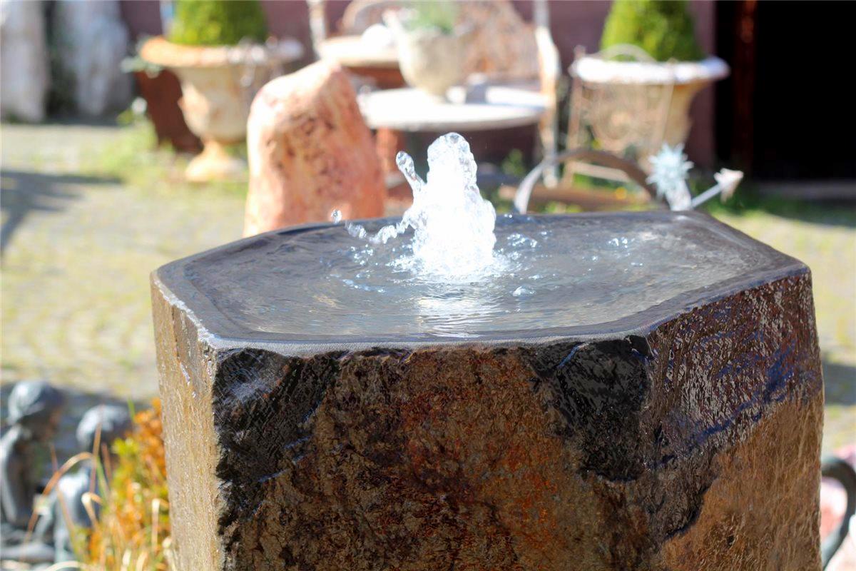 Wasserspiel SET Quellstein Monolith 100cm mit Quellschale Basalt Gartenbrunnen