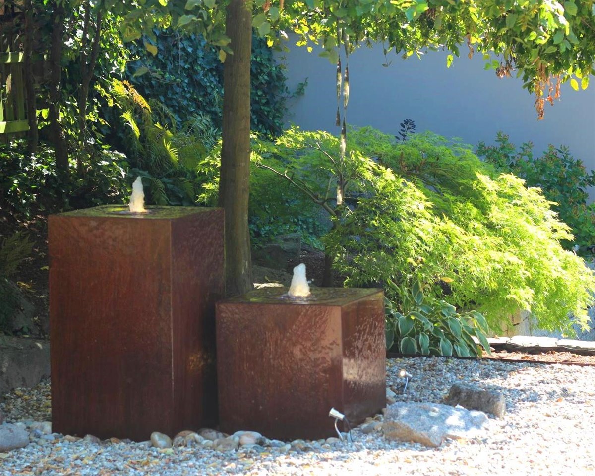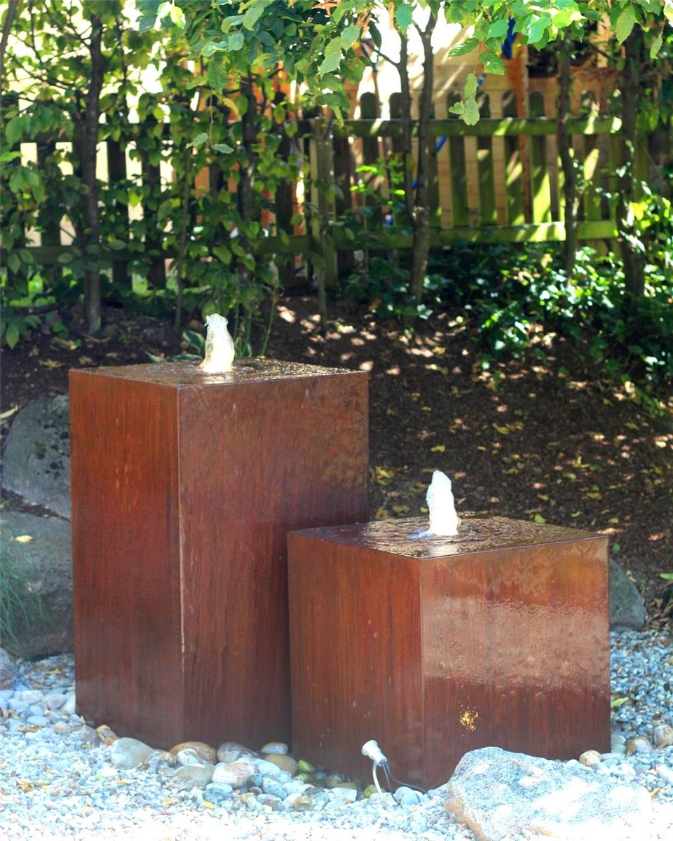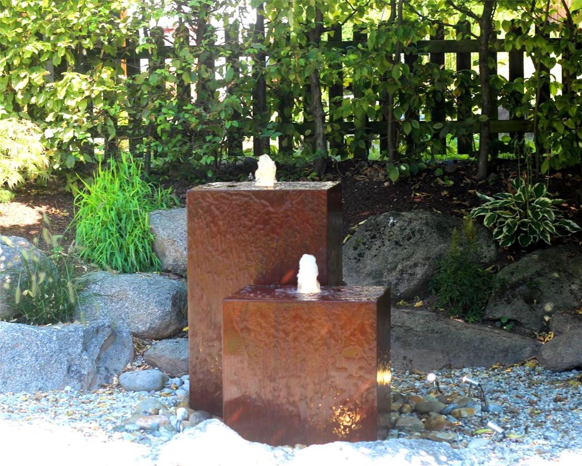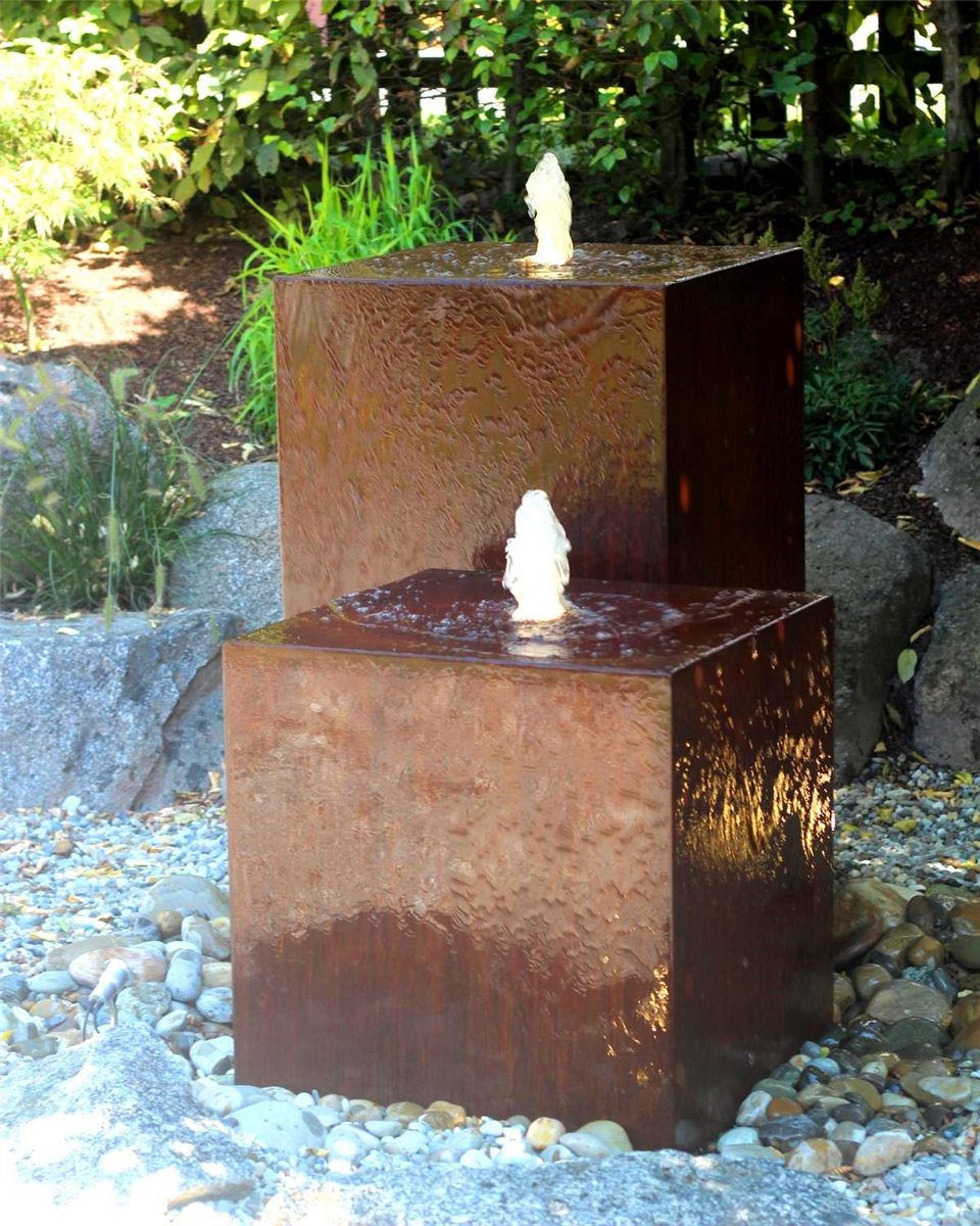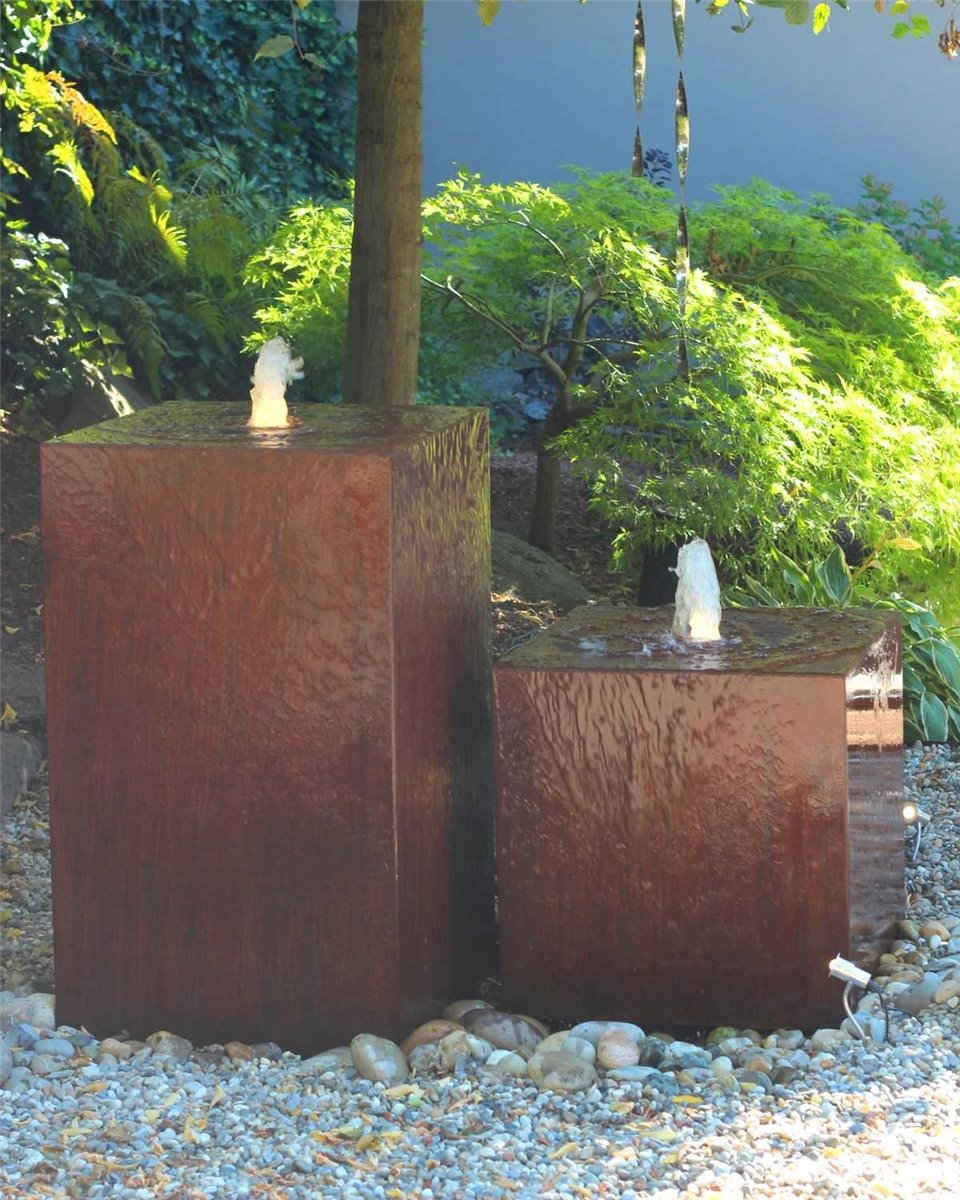 Cortenstahl Duo 60/100cm Würfel und Quader Edelrost Gartenbrunnen Komplettset