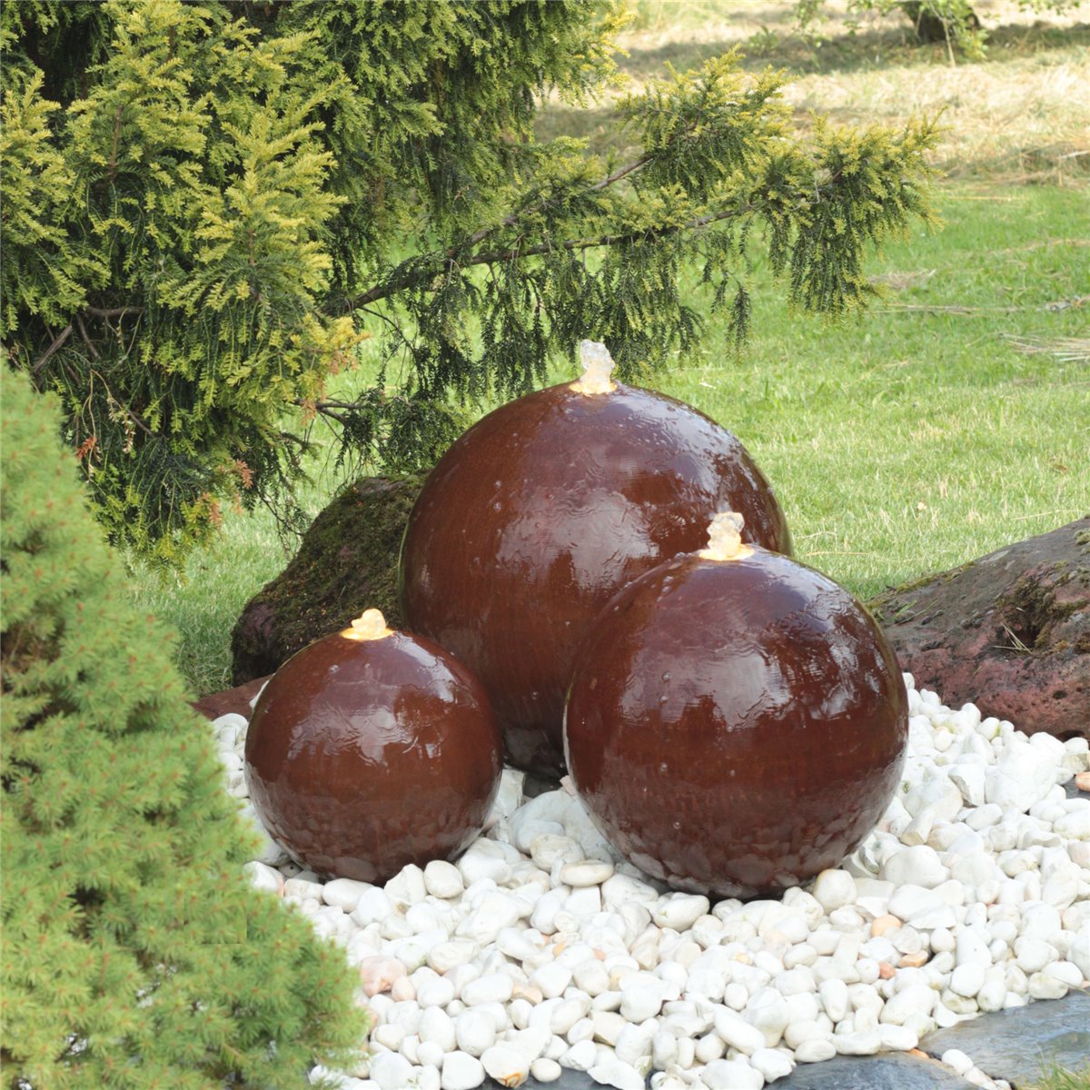 Cortenstahl Kugelbrunnen Trio 30/40/50 cm Edelrost Gartenbrunnen Komplettset