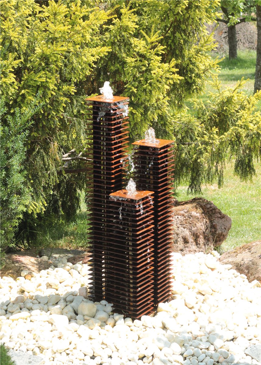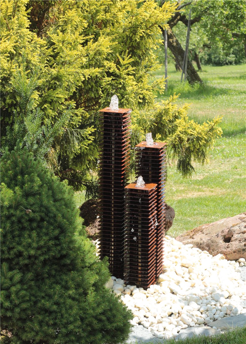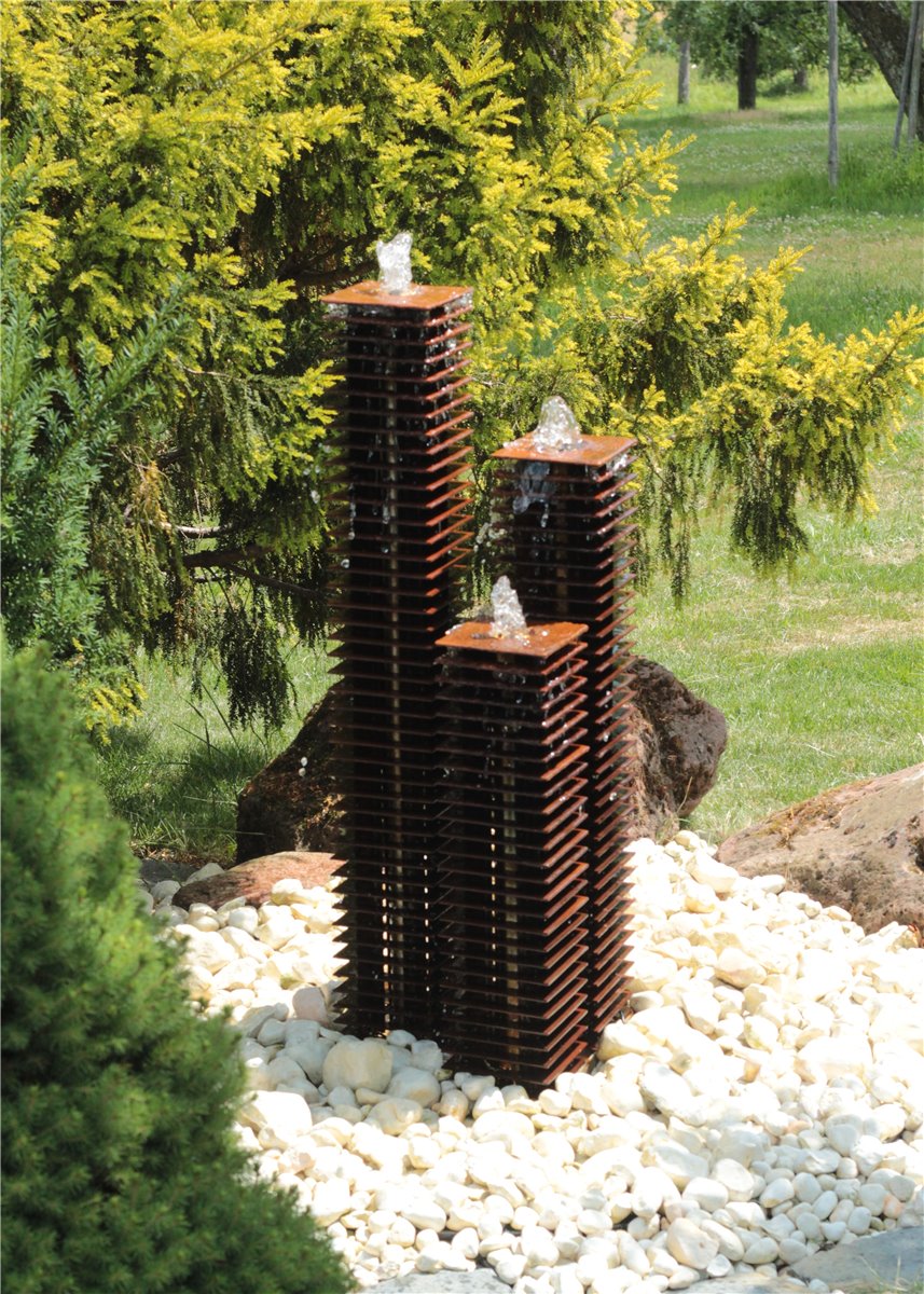 Cortenstahl Lamellen Säulen Trio 100/15 Edelrost Gartenbrunnen Springbrunnen