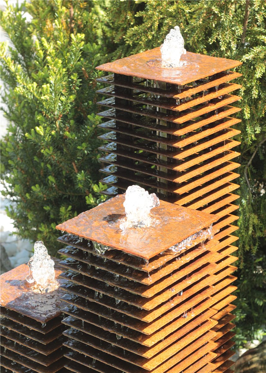 - Mit diesem Komplettset als geschlossenes Wasserkreislaufsystem erhalten Sie ein Cortenstahl Quellsäulen Lamellen Trio inkl. Einbaubecken, Abdeckplatte, Pumpensystem und Anschlussteile in hochwertiger Qualität sowie eine Einbau-/Montageanleitung mit wertvollen Experten-Tipps