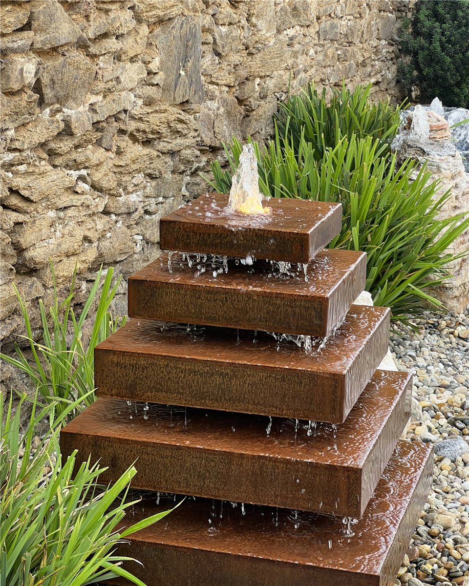 - Mit diesem Komplettset als geschlossenes Wasserkreislaufsystem erhalten Sie eine Cortenstahl Pyramide mit Quellöffnung inkl. Einbaubecken, Abdeckplatte, Pumpensystem und Anschlussteile in hochwertiger Qualität sowie eine Einbau-/Montageanleitung mit wertvollen Experten-Tipps