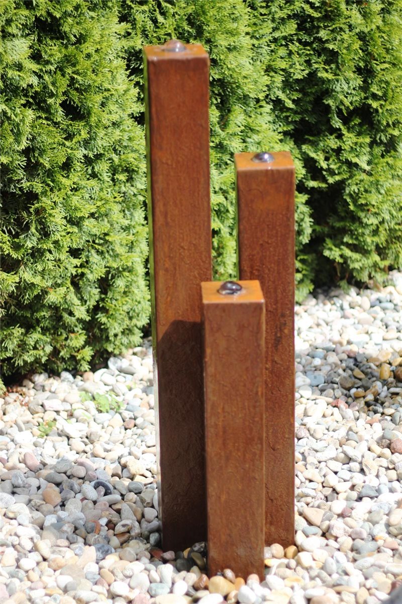 Cortenstahl Säulen Trio 100/10 Edelrost Gartenbrunnen Springbrunnen Komplettset