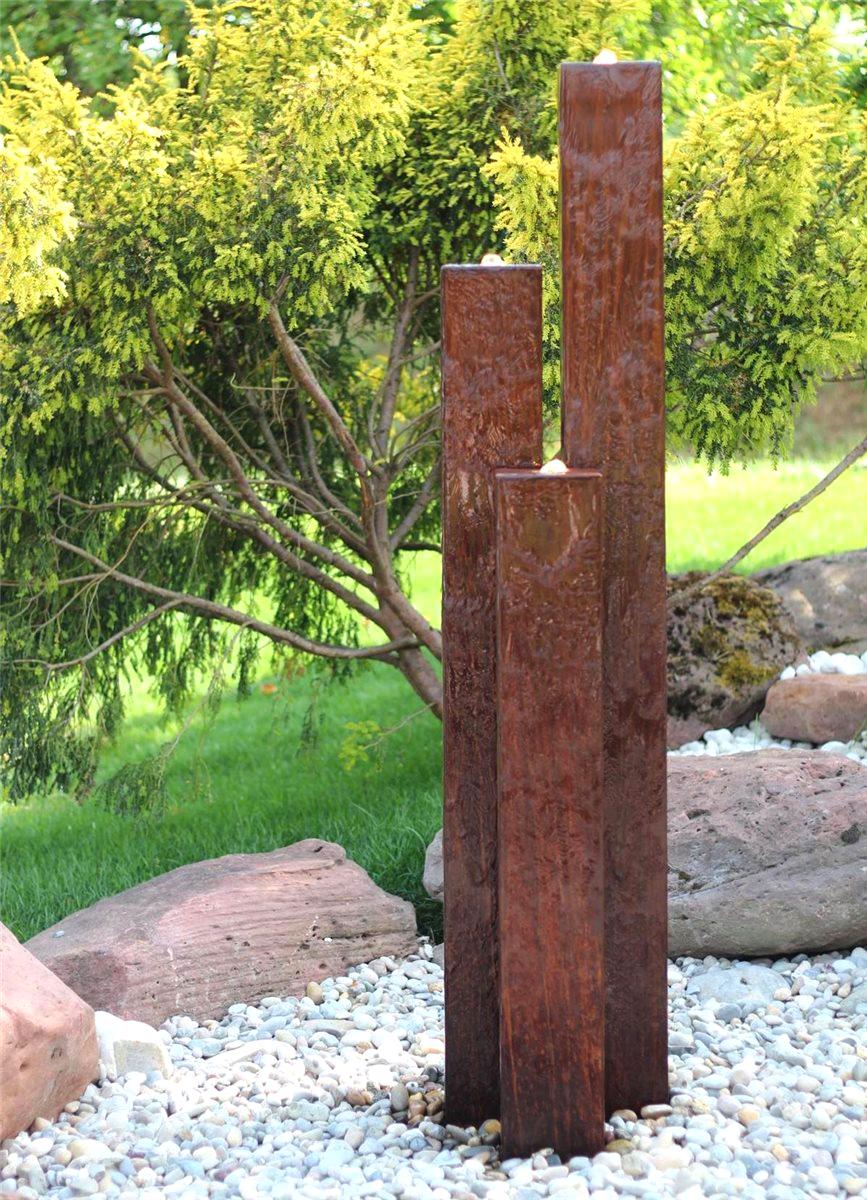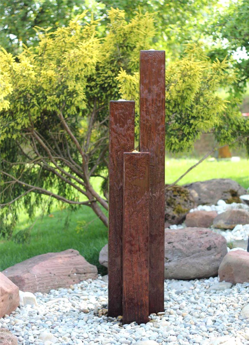 Cortenstahl Säulen Trio 160/15 Edelrost Gartenbrunnen Springbrunnen Komplettset
