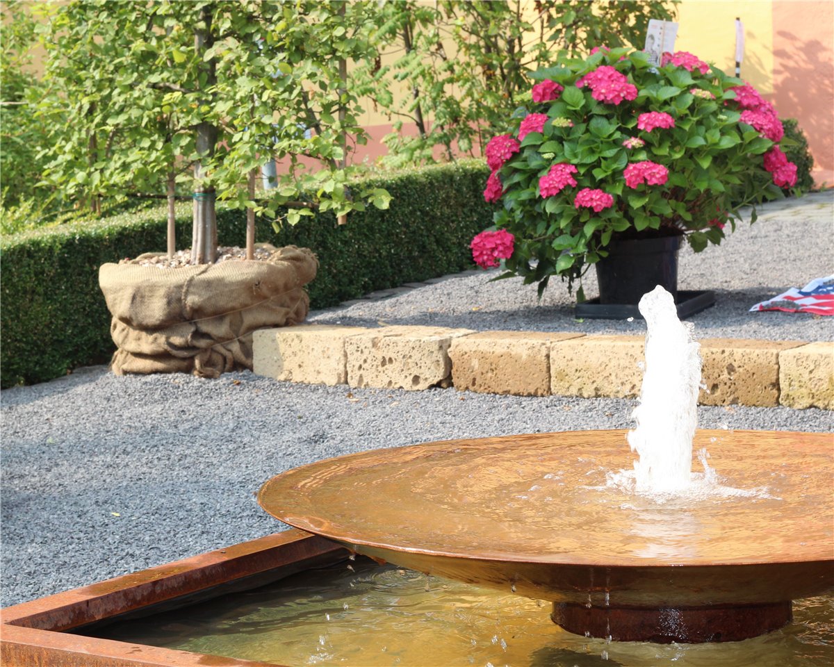 Cortenstahl Wasserschale 120 mit Fontäne Edelrost Springbrunnen Gartenbrunnen Komplettset