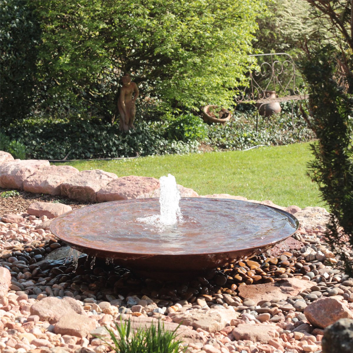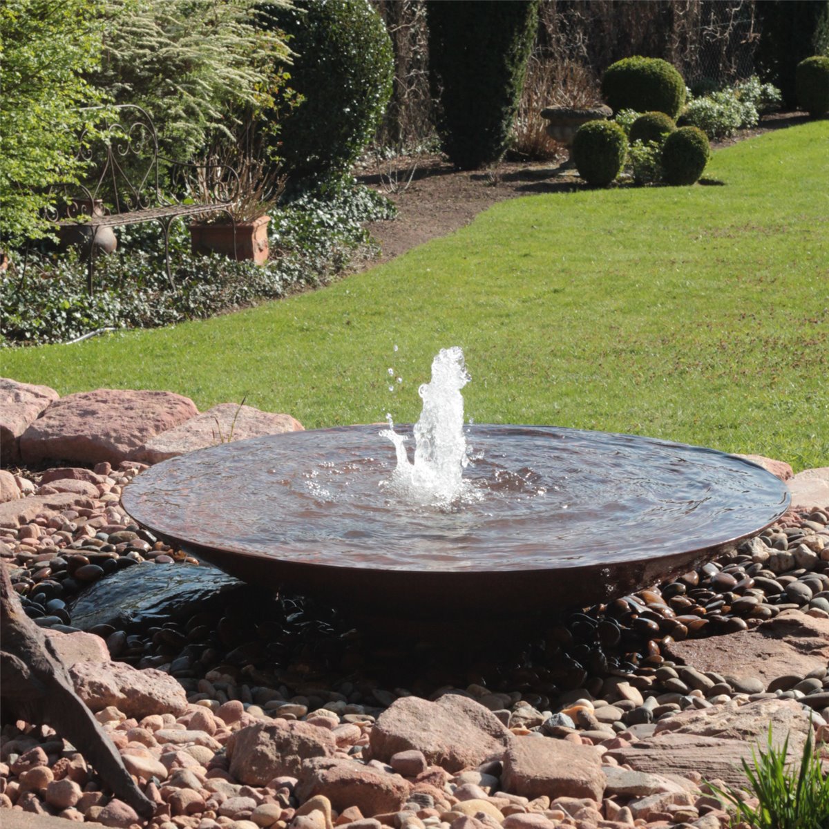 Cortenstahl Wasserschale 120 mit Fontäne Edelrost Springbrunnen Komplettset