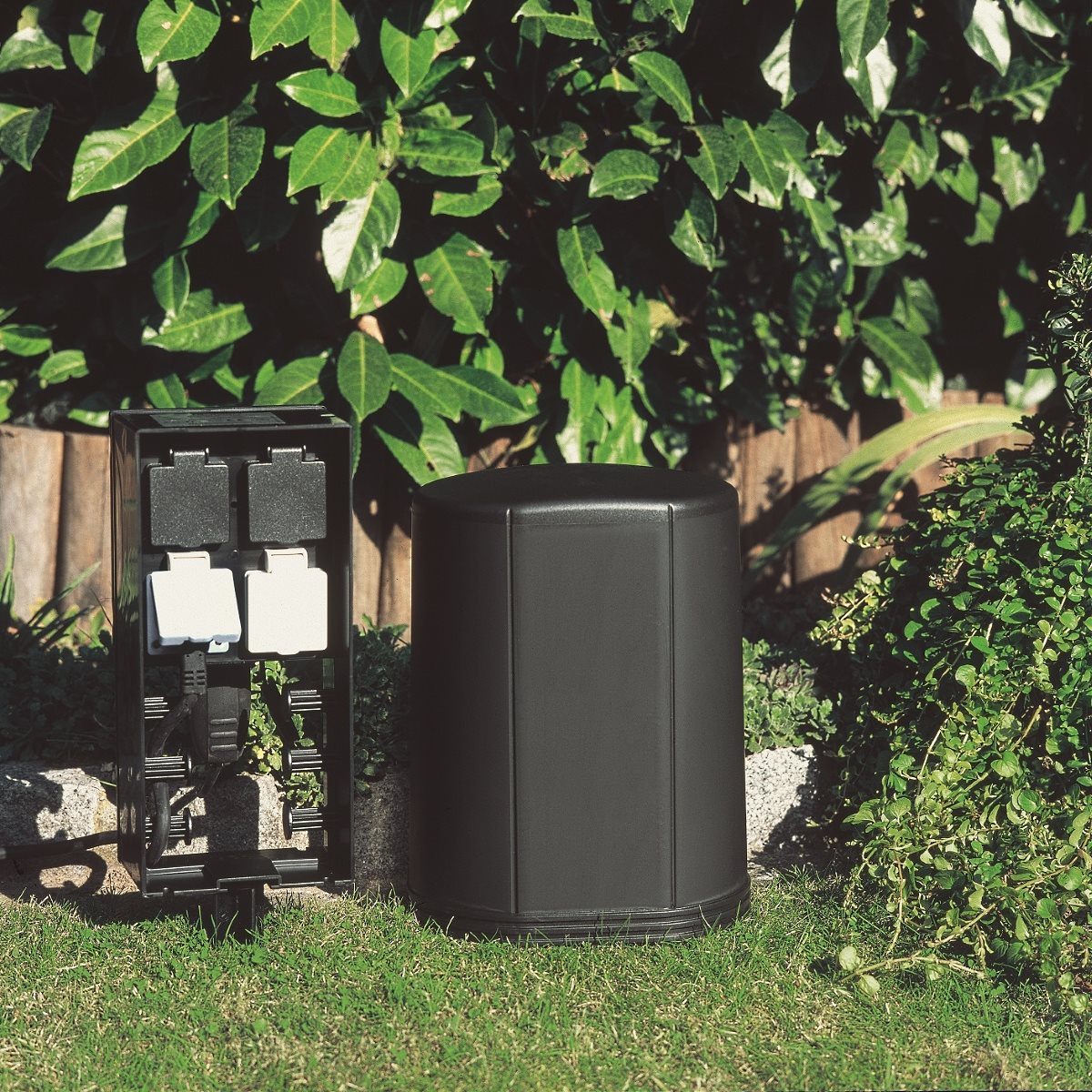 - Ganzjähriger Einsatz dank spritzwassergeschützter und zugentlasteter Steckdosen