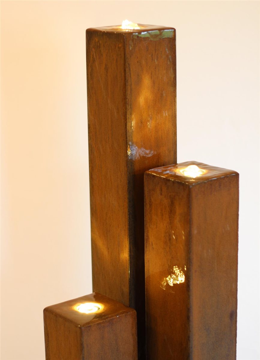 Metallbrunnen Trio Säulen 135 Cortenstahl Edelrost Springbrunnen
