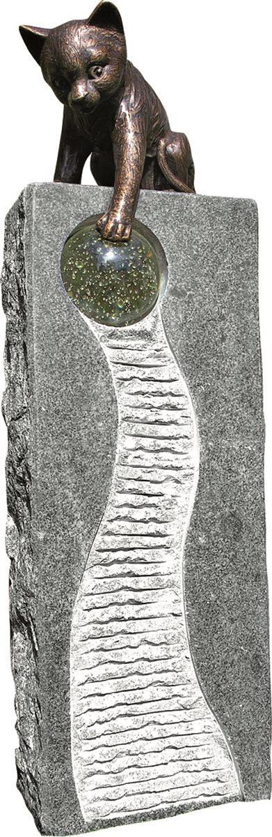 NUR ABHOLUNG! Gartenbrunnen Granit Säule 70cm Granitbrunnen Komplettset mit Glaskugel (ohne Katze)