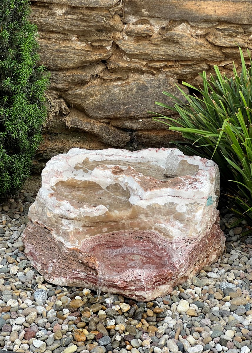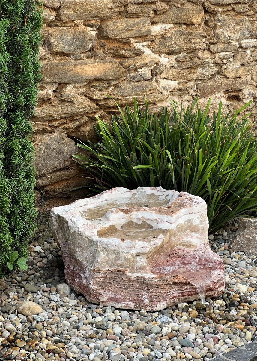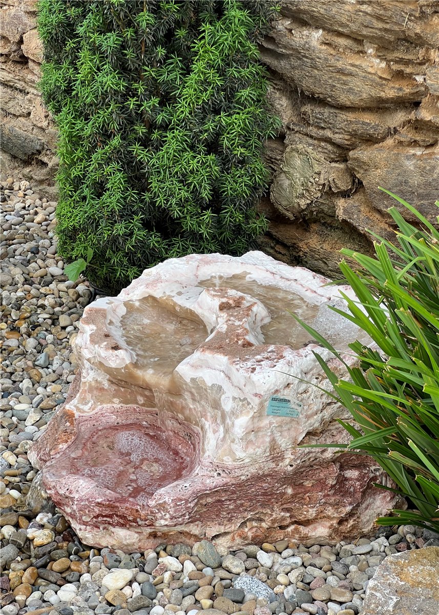 Quellstein Bachlauf Onyx Marmor Flamingo L75cm Gartenbrunnen Springbrunnen Komplettset