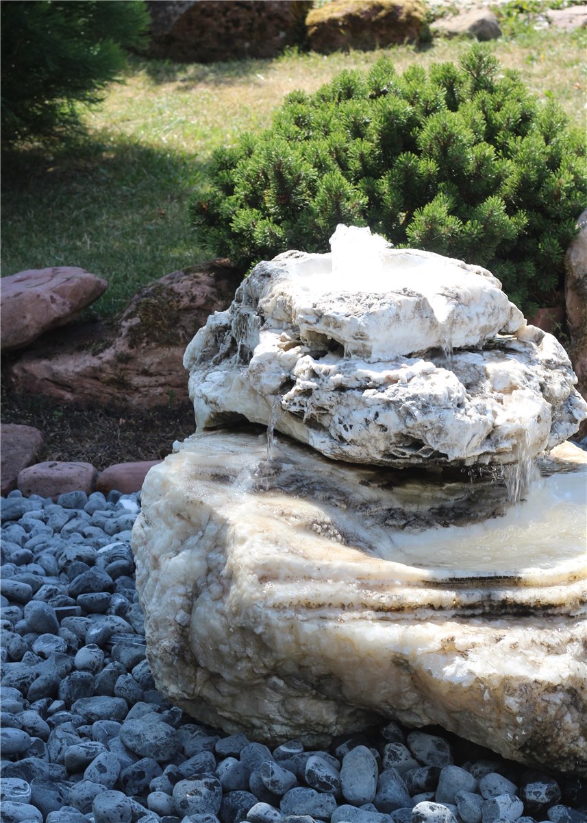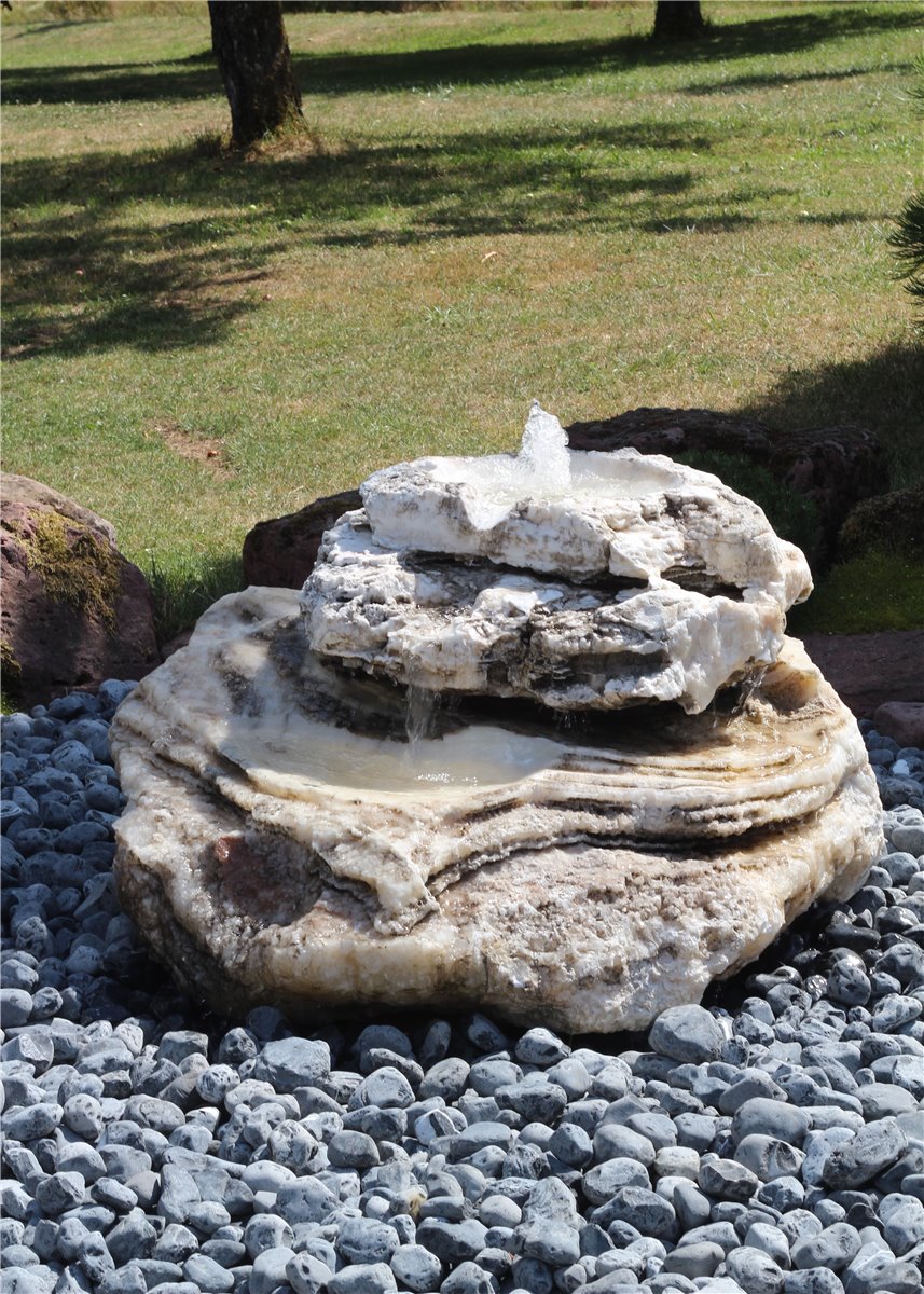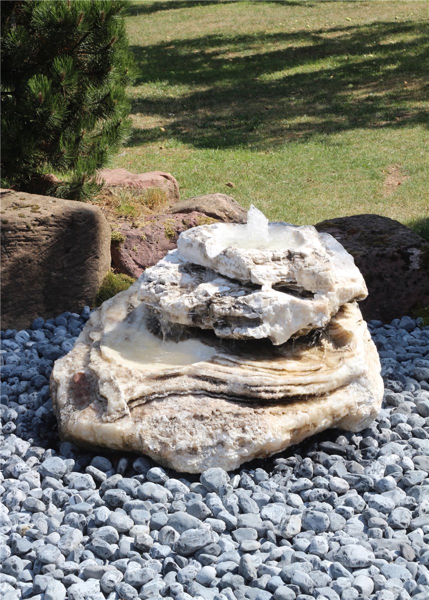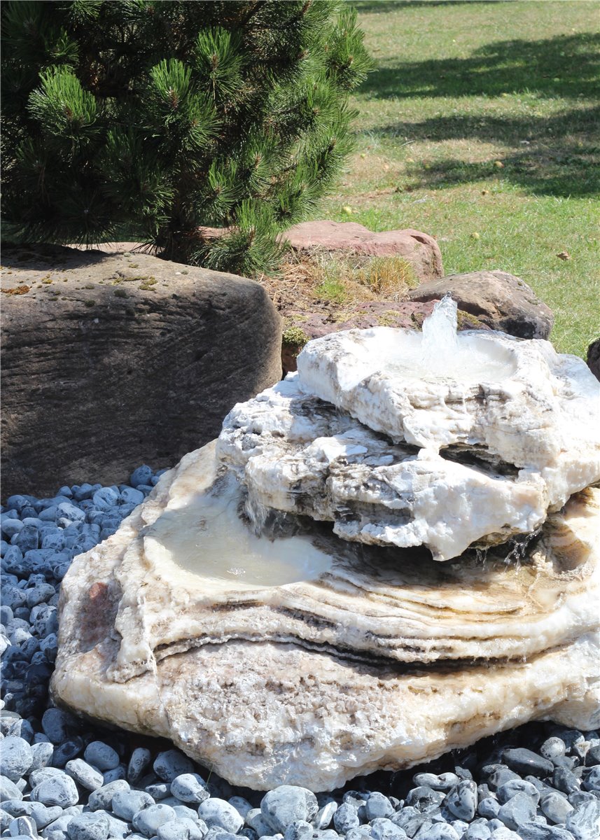 Quellstein Bachlauf Onyx Marmor L110cm mit Quellschalen Gartenbrunnen Springbrunnen