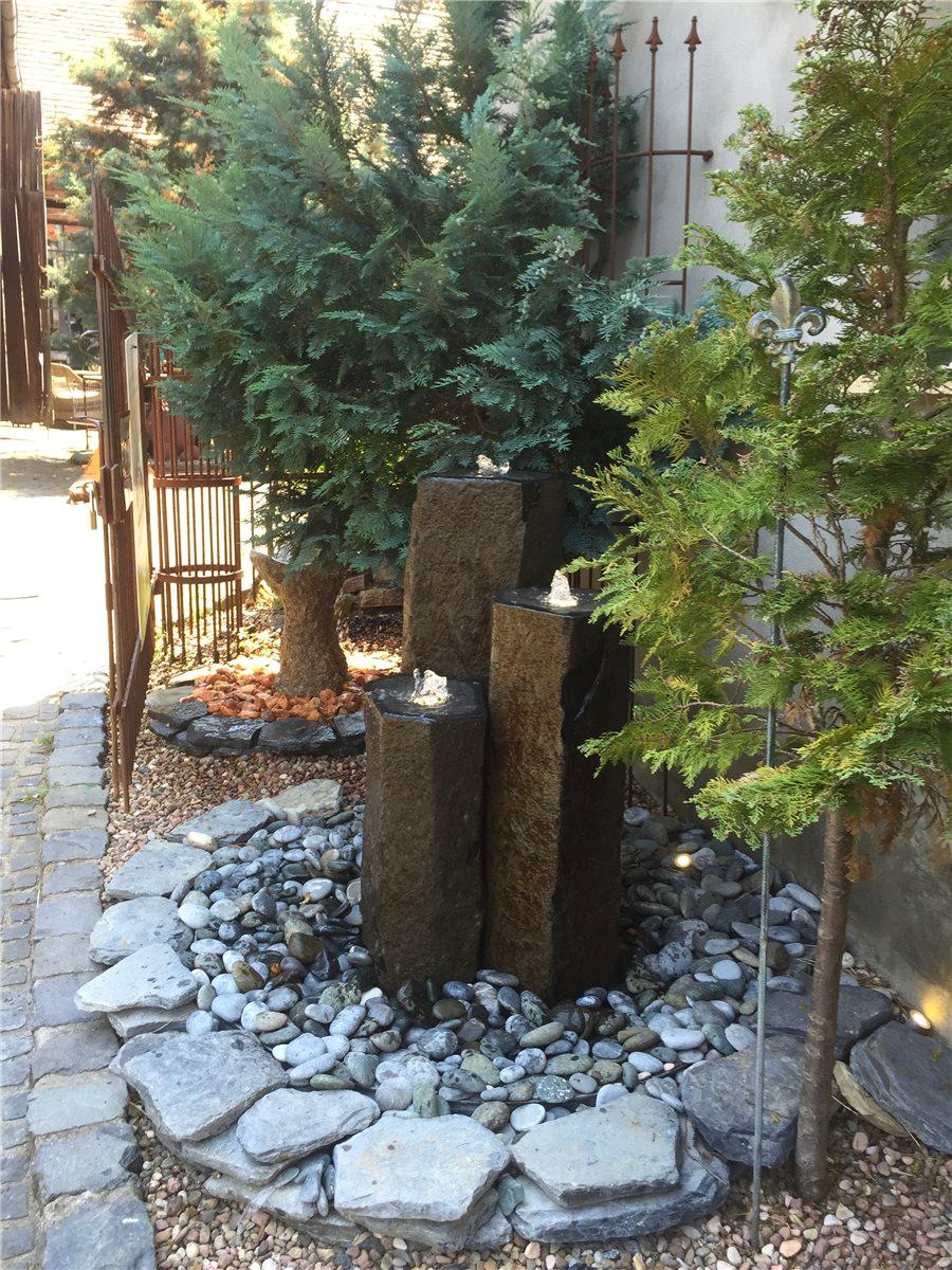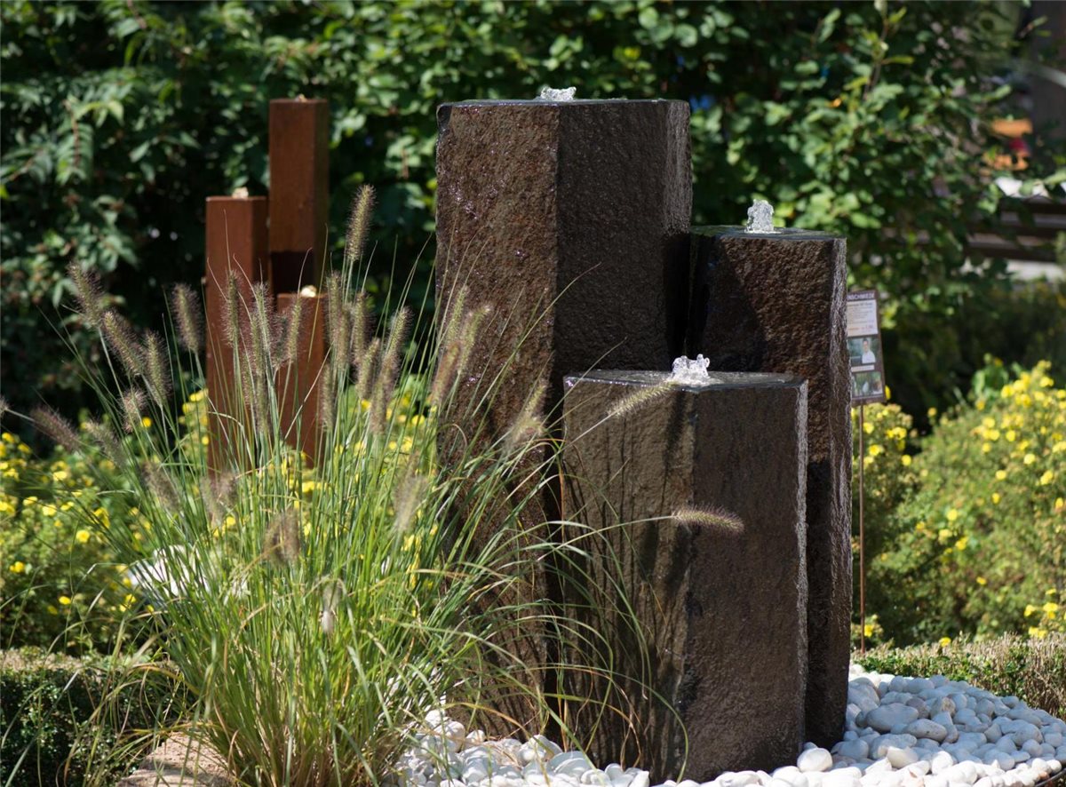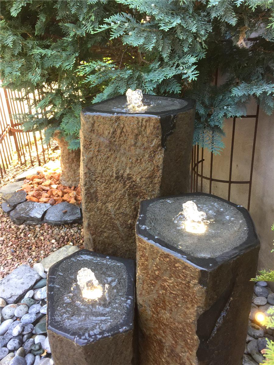 Quellstein Basalt Säulen Trio 100cm mit Quellschalen Gartenbrunnen Springbrunnen