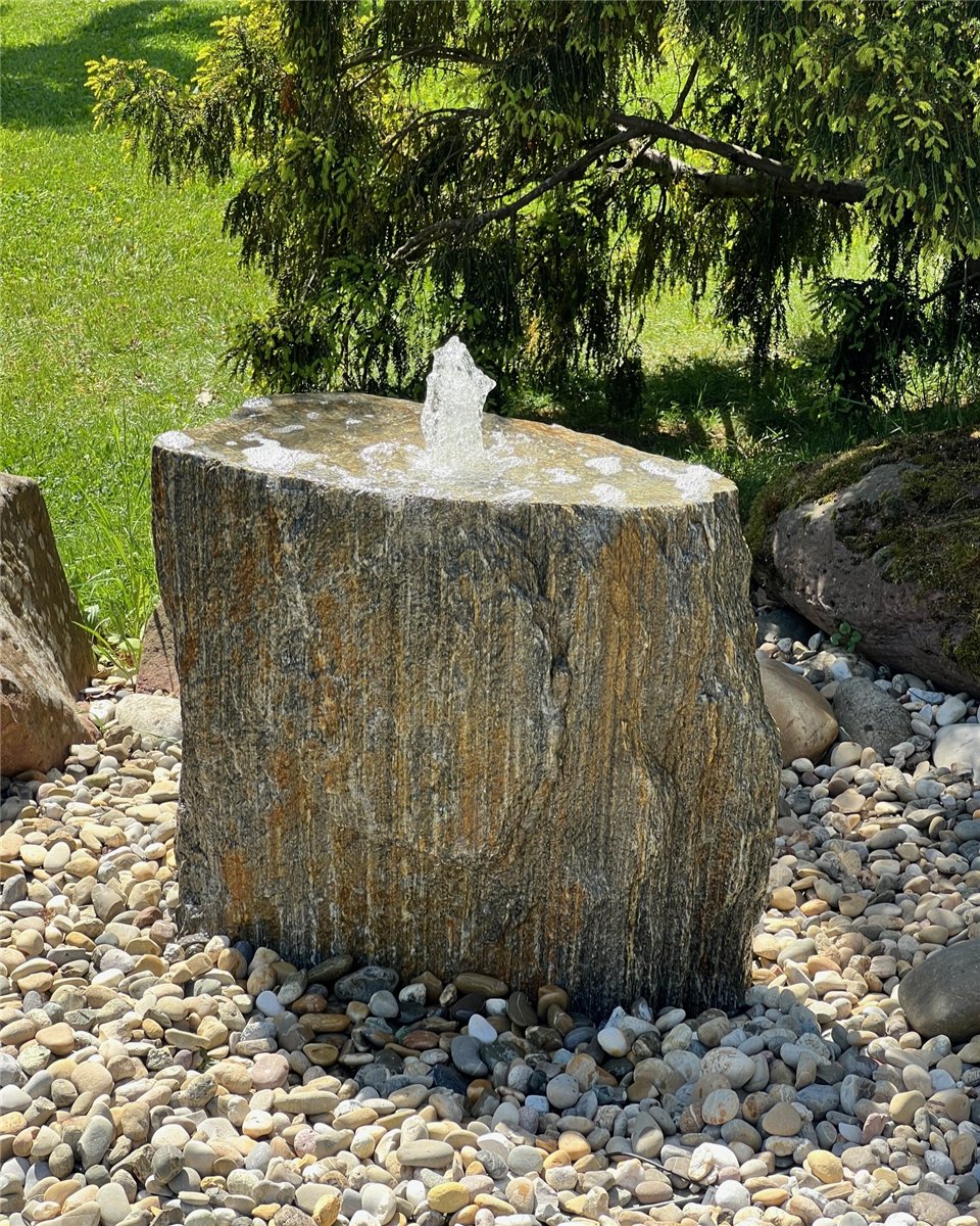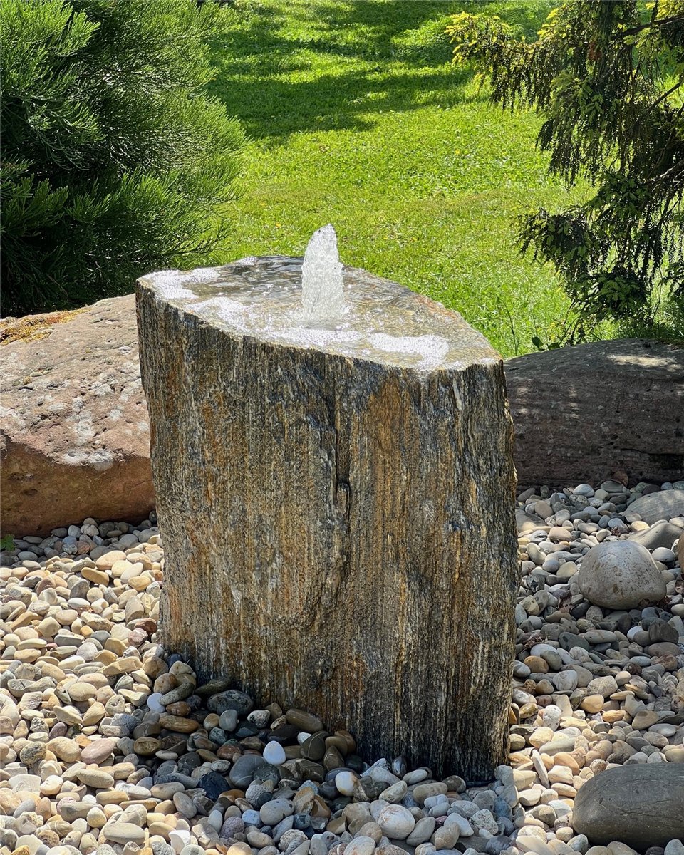Produktinformationen "Quellstein Gneis 62cm mit Quellschale Naturstein Gartenbrunnen Springbrunnen Komplettset"
