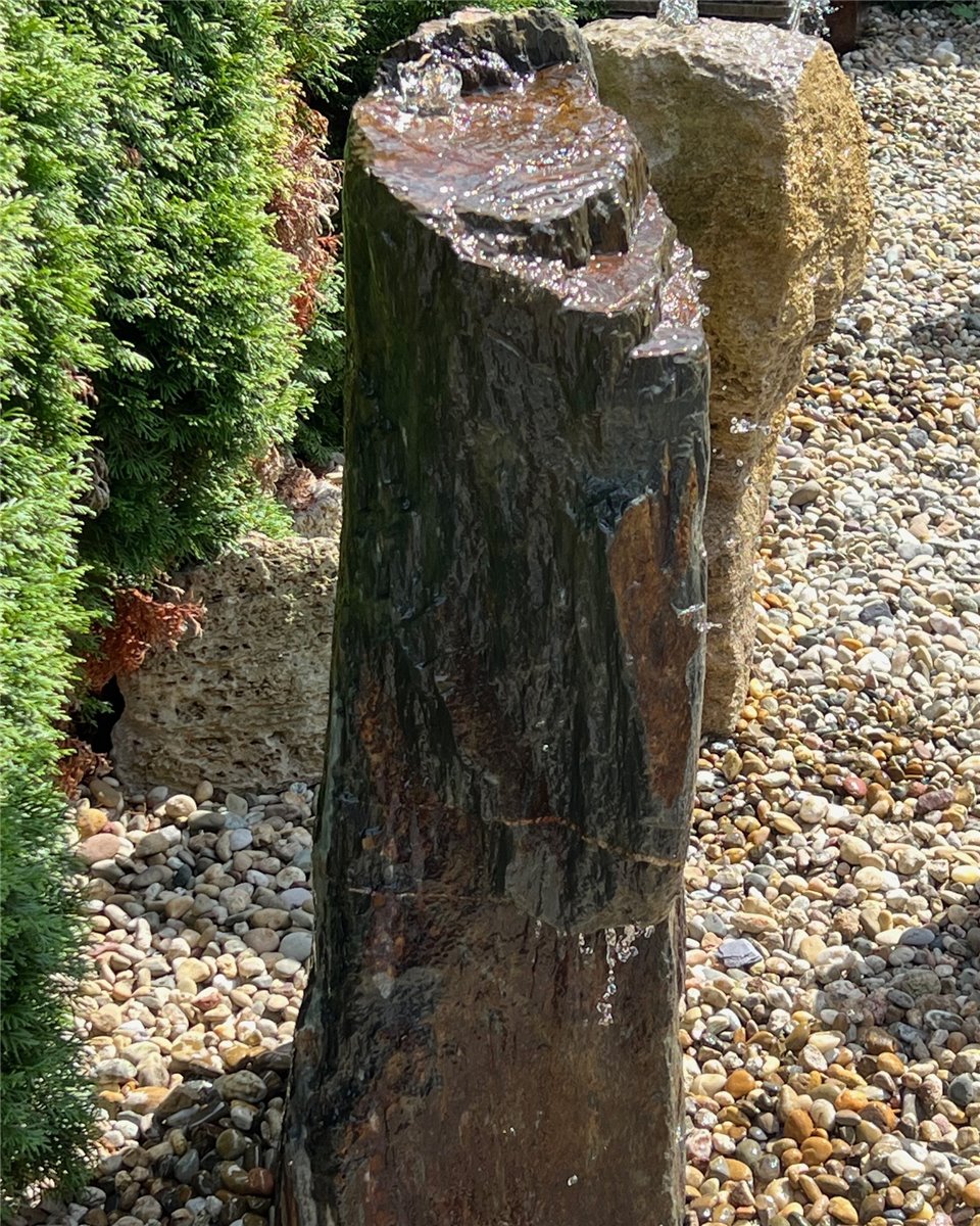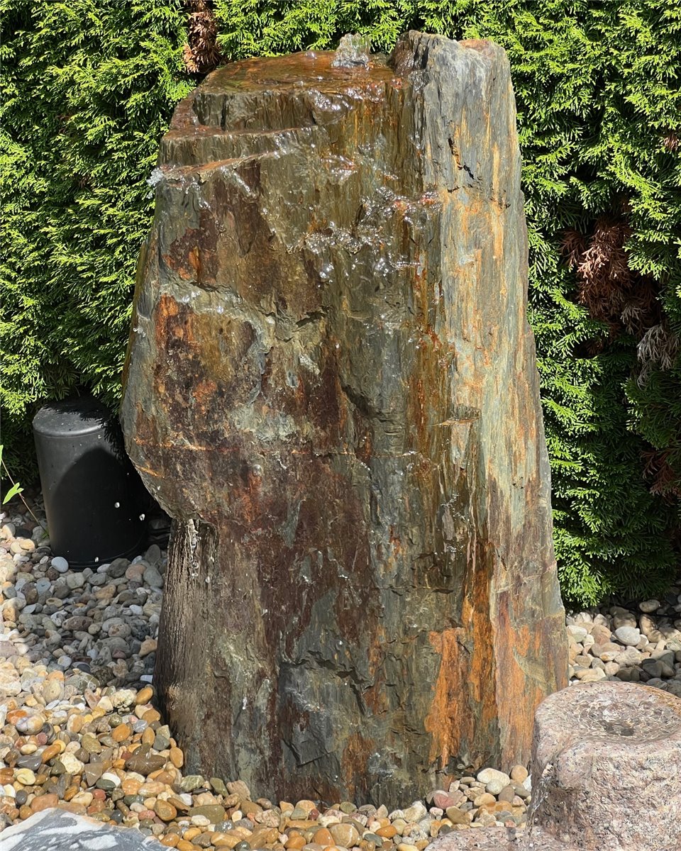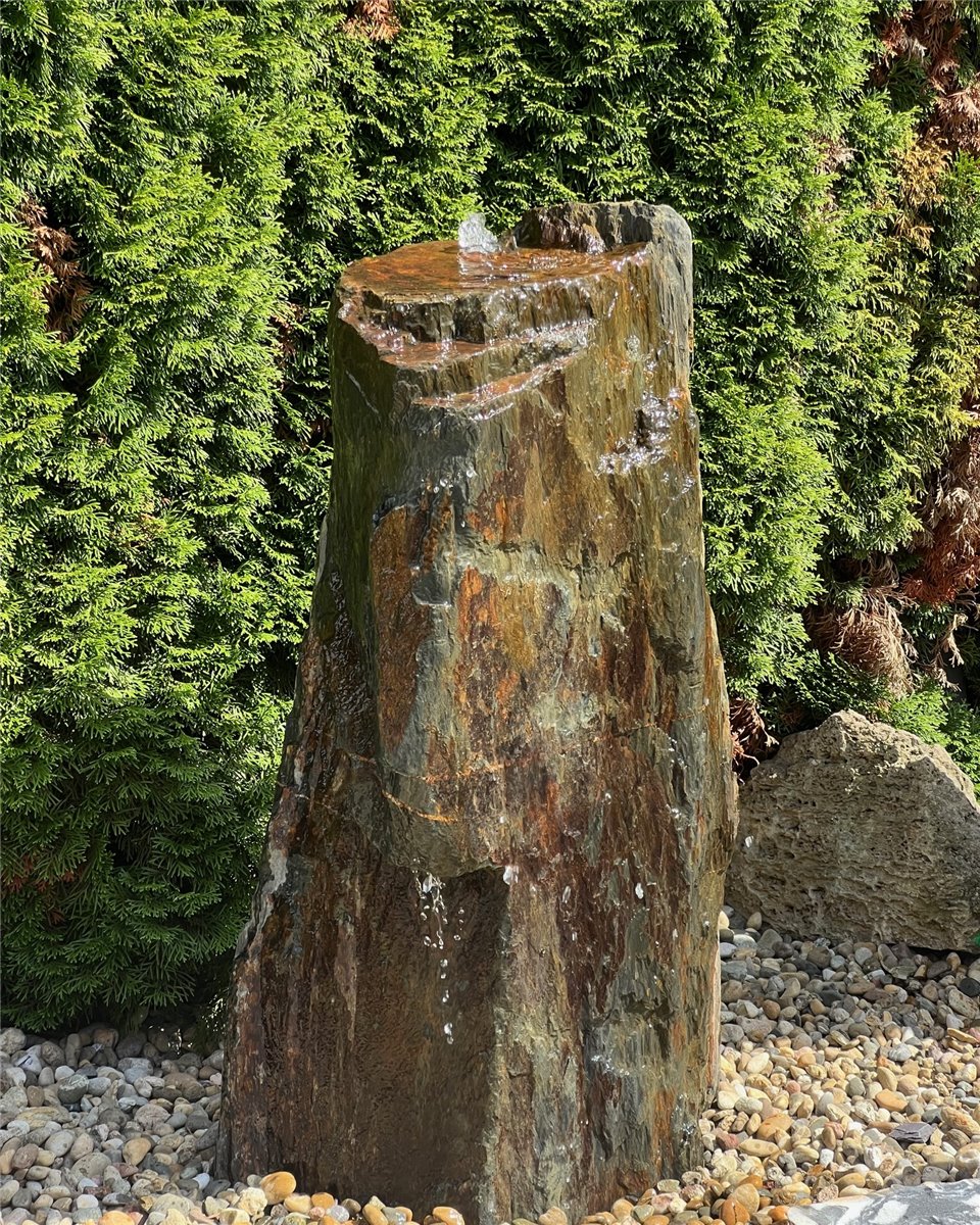 Quellstein Monolith Schiefer 115cm mit Felsvorsprung Gartenbrunnen Springbrunnen