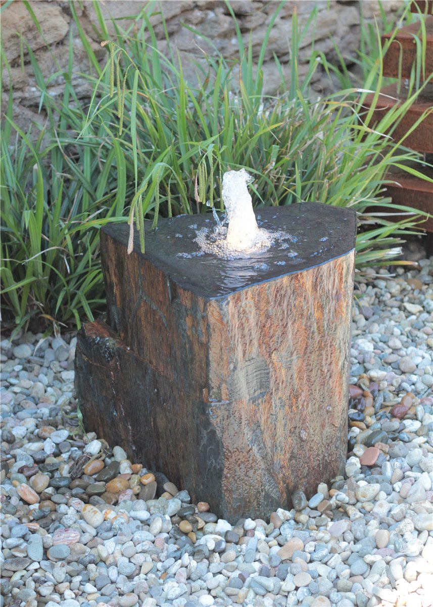 Quellstein Schiefer L60cm mit Quellschale Komplettset Gartenbrunnen Springbrunnen
