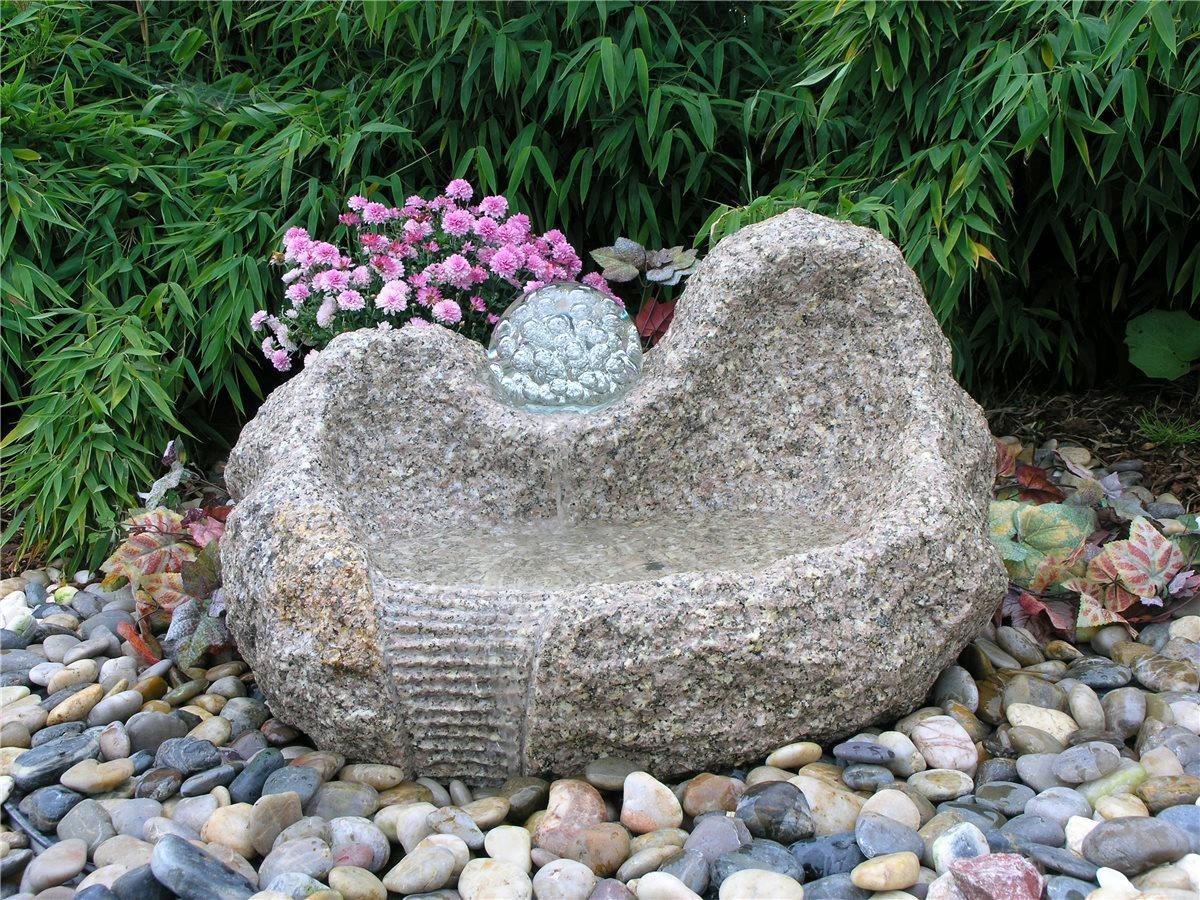 Quellstein Yuan L80cm Granit Gartenbrunnen mit dreh. Glaskugel Springbrunnen