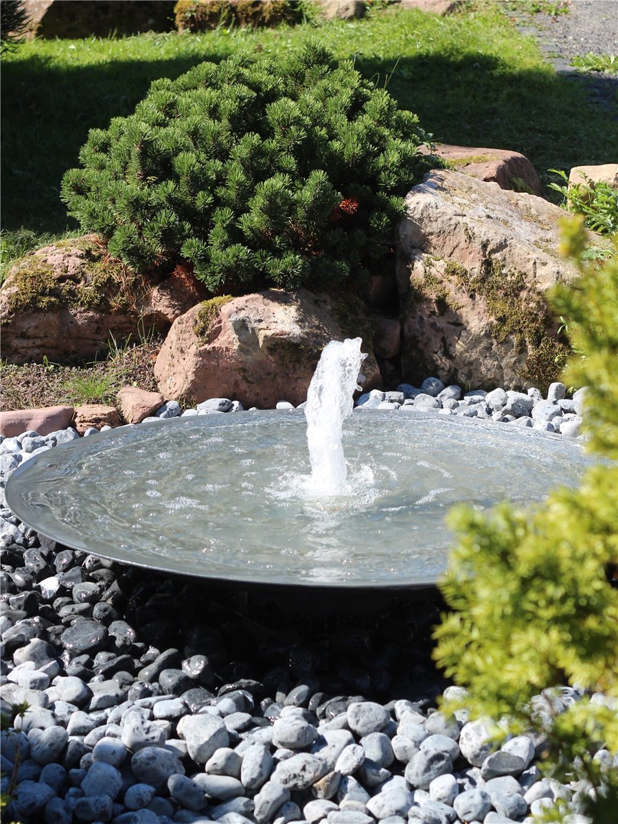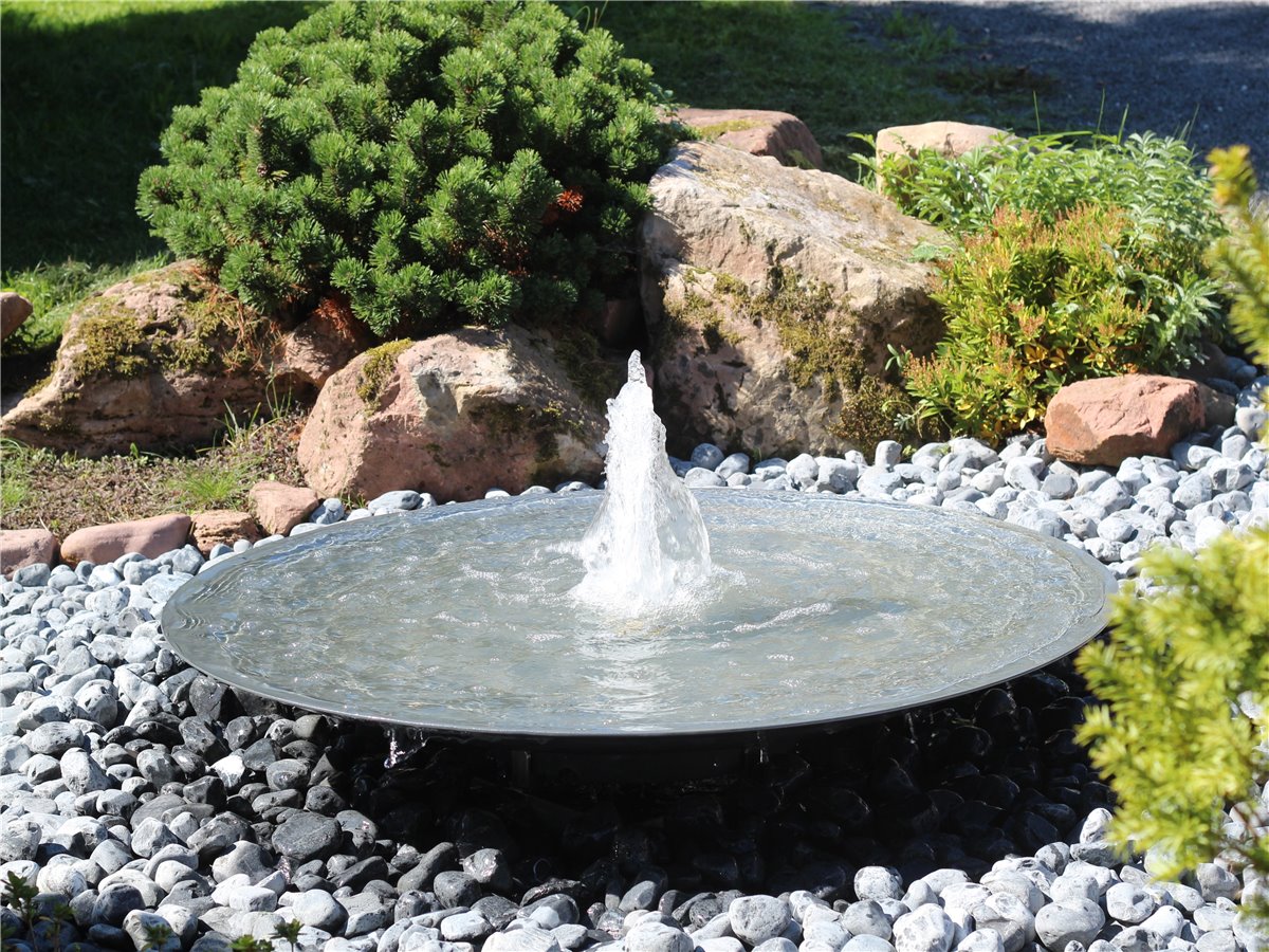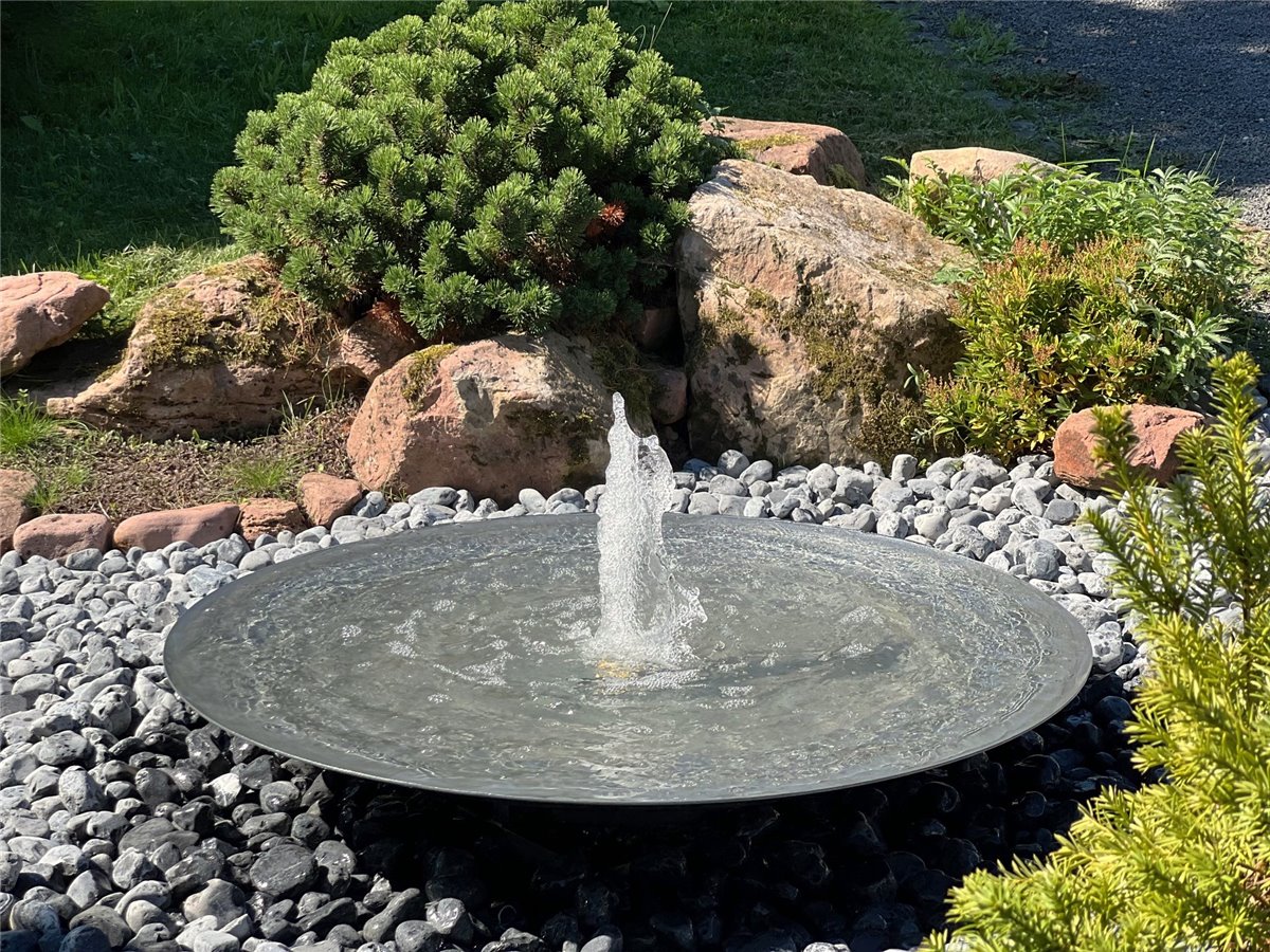 Wasserschale 120 mit Fontäne anthrazit grau Stahlbrunnen Springbrunnen Komplettset