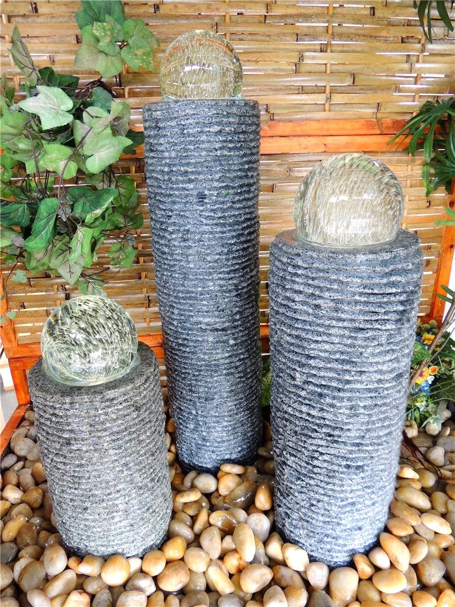 Wasserspiel SET 3er Säulen Ninda 80cm Granit Gartenbrunnen inkl. Pumpe Becken
