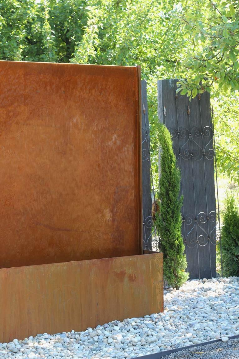 - Auf Ihrem Betriebsgelände oder als Eyecatcher auf Messen ist diese Cortenstahl-Wasserwand ein garantierter Kundenmagnet