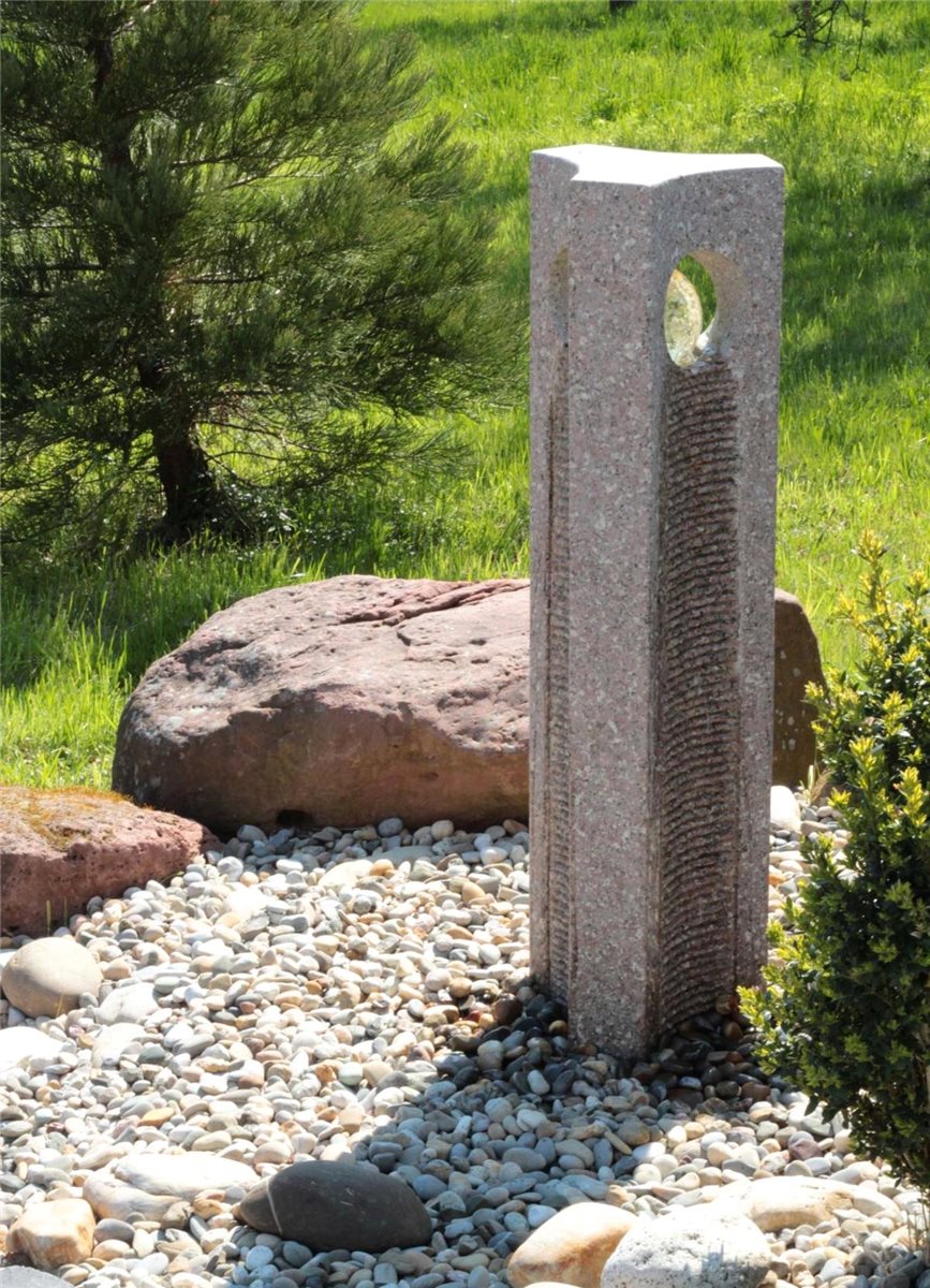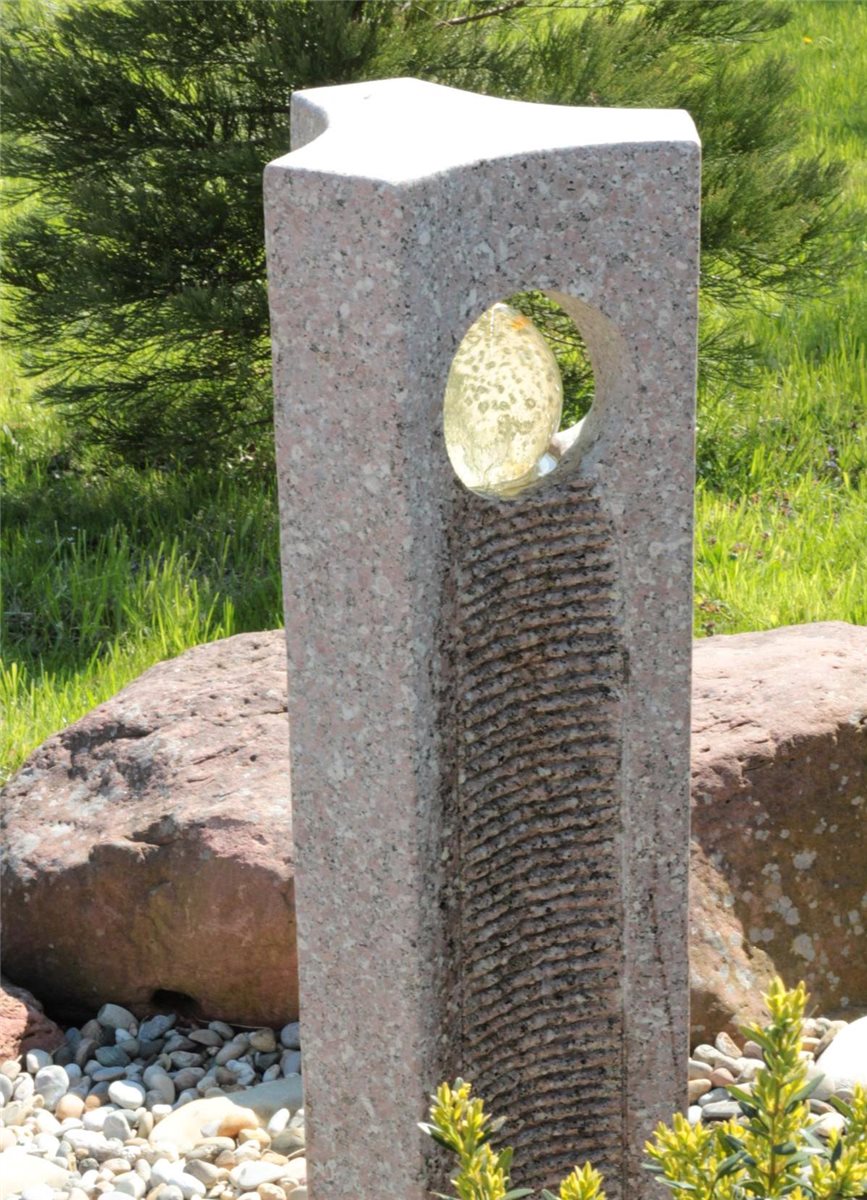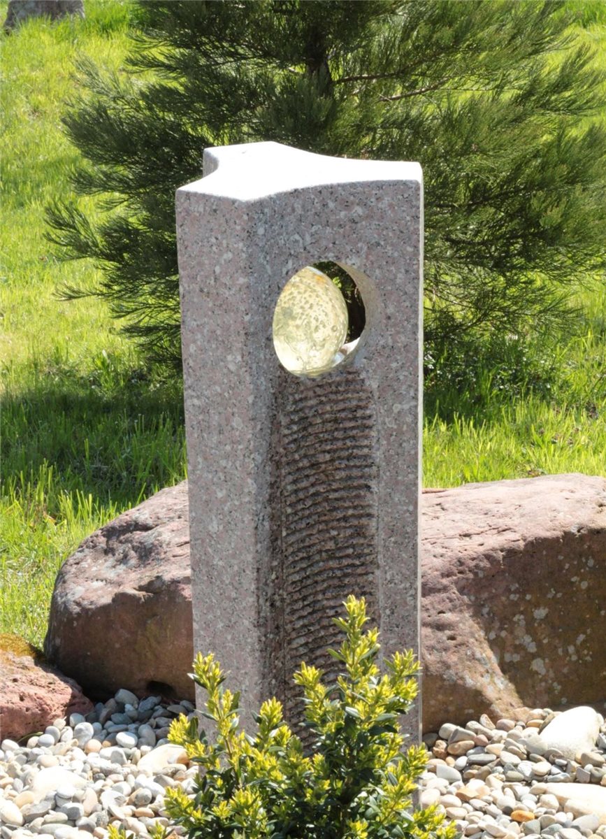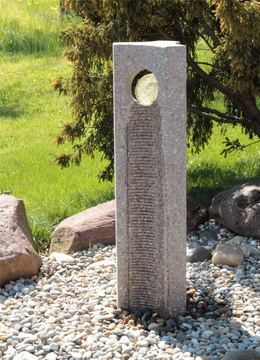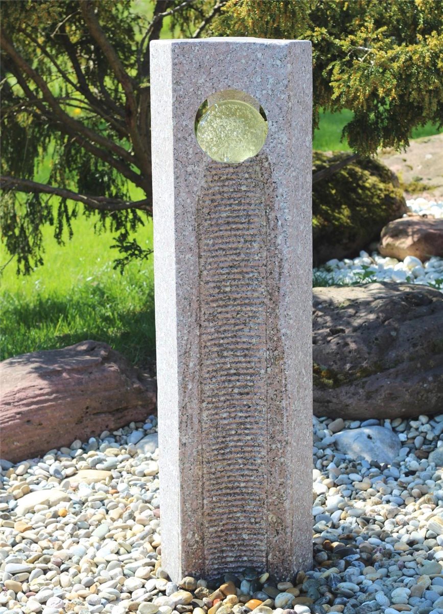Wasserspiel SET Quellstein Joy 120cm Granit Gartenbrunnen mit dreh. Glaskugel