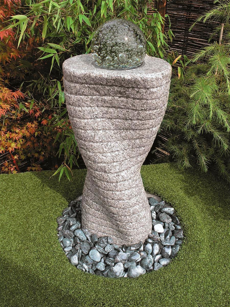 Wasserspiel SET Quellstein Säule 80cm Granit Gartenbrunnen mit dreh. Glaskugel
